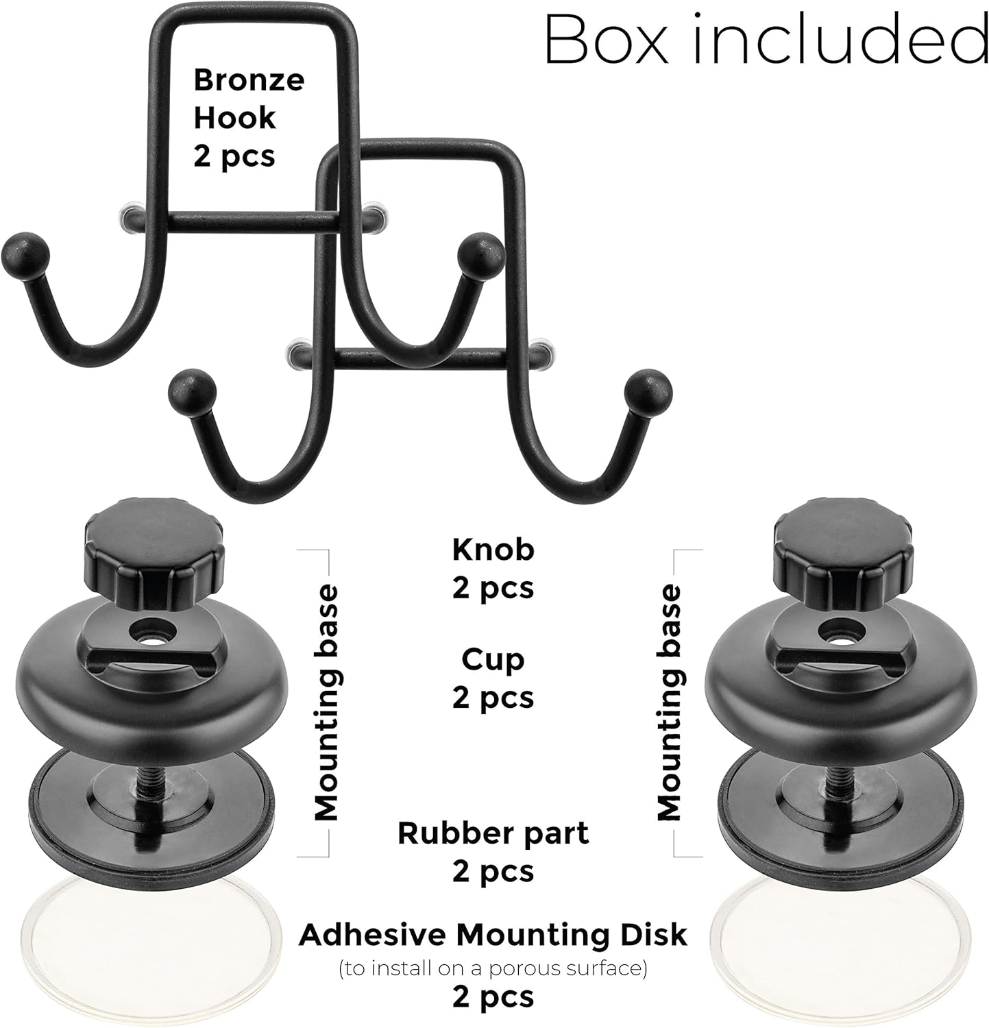 - NO TOOLS, NO SCREWS, NO HOLES: With the suction cup technology, it becomes extremely easy to install suction hooks: simply position on a smooth surface, apply pressure and turn clockwise.