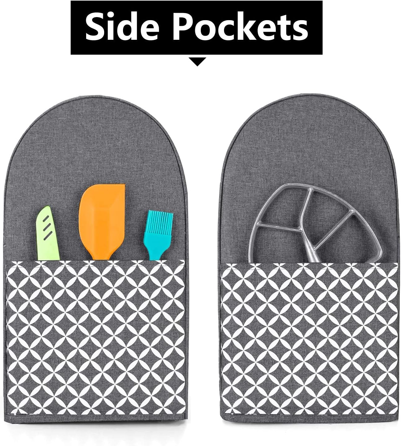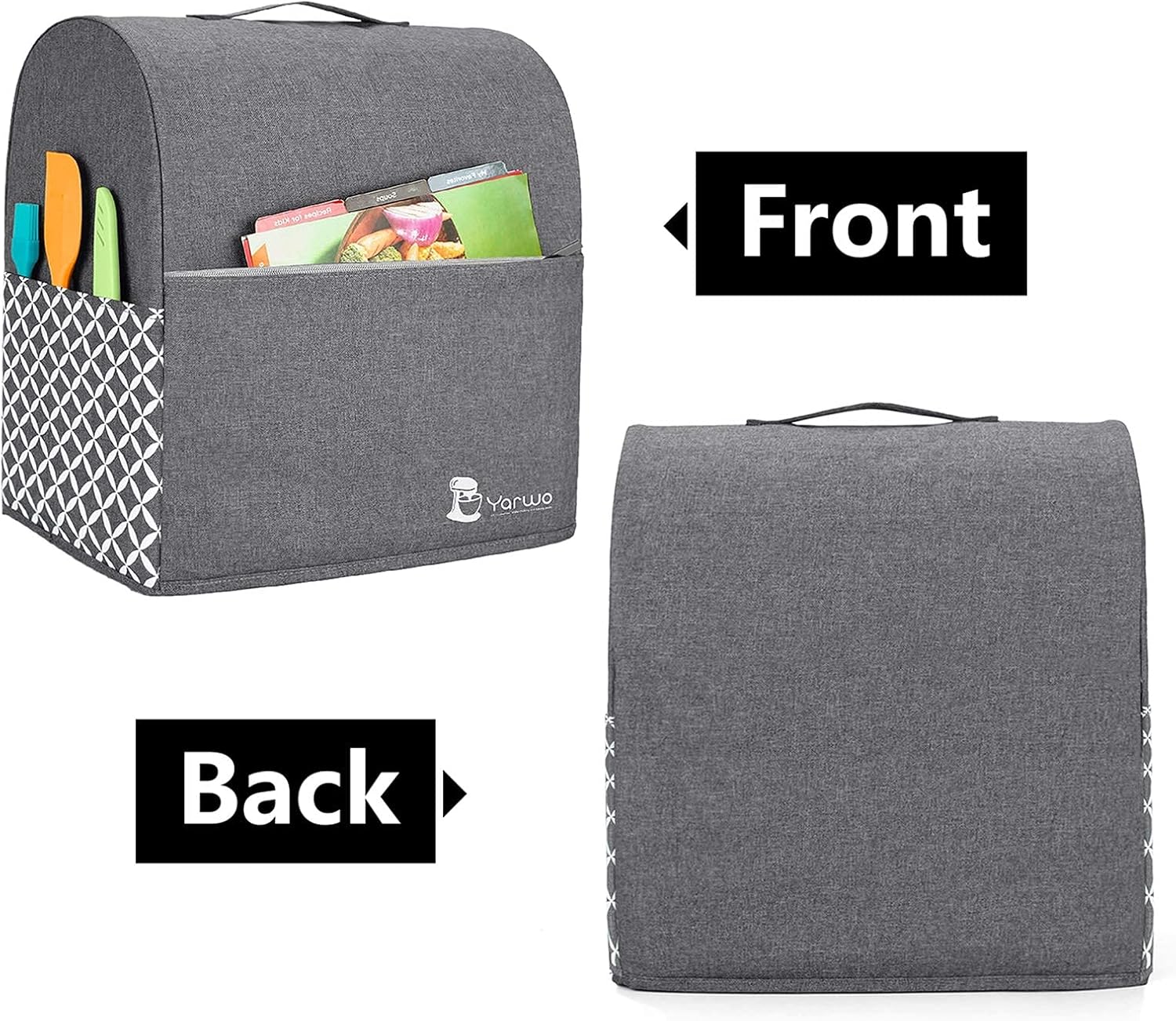 Yarwo Stand Mixer Cover Compatible with 6-8 Quart KitchenAid Mixer, Protective Dust Cover with Top Handle and Pockets for Accessories, Gray with Grid