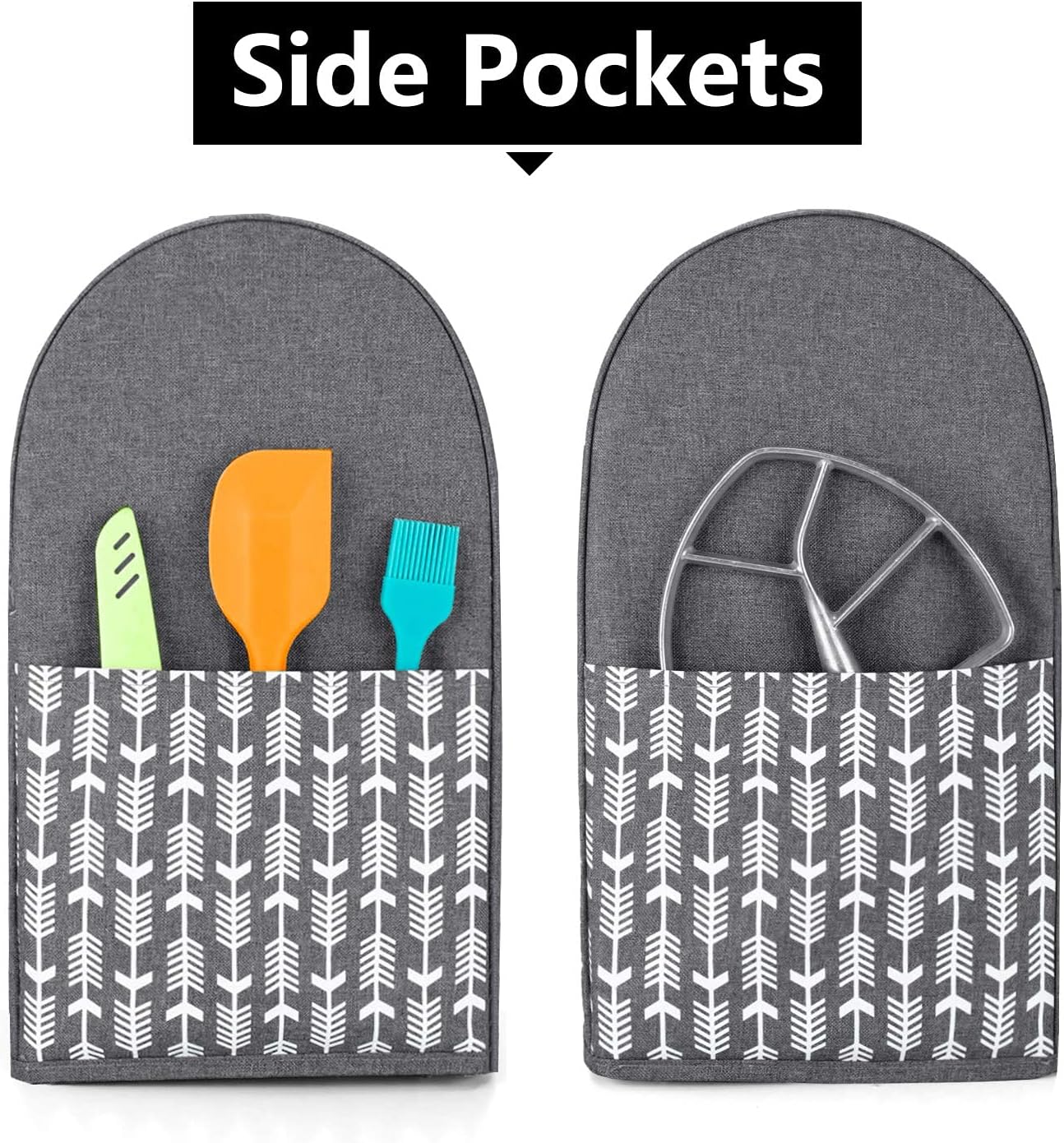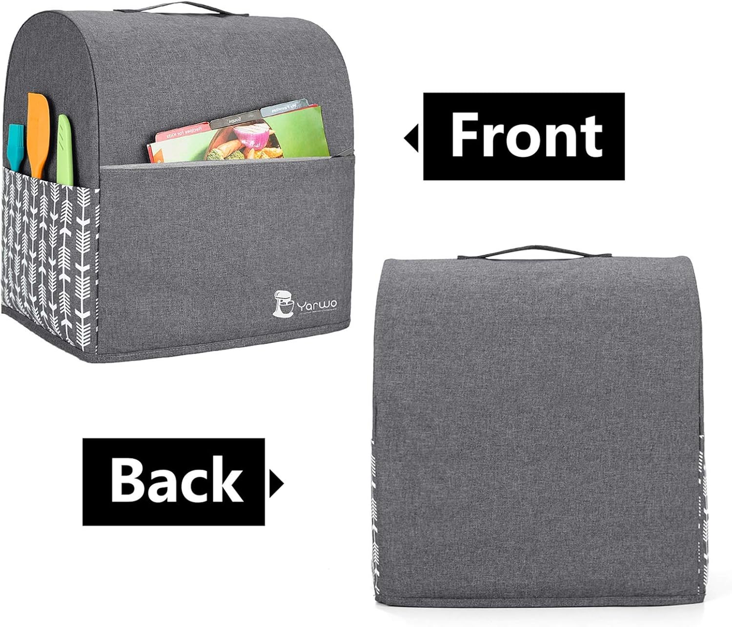 Yarwo Stand Mixer Cover Compatible with 6-8 Quart KitchenAid Mixer, Protective Dust Cover with Top Handle and Pockets for Accessories, Gray with Arrow