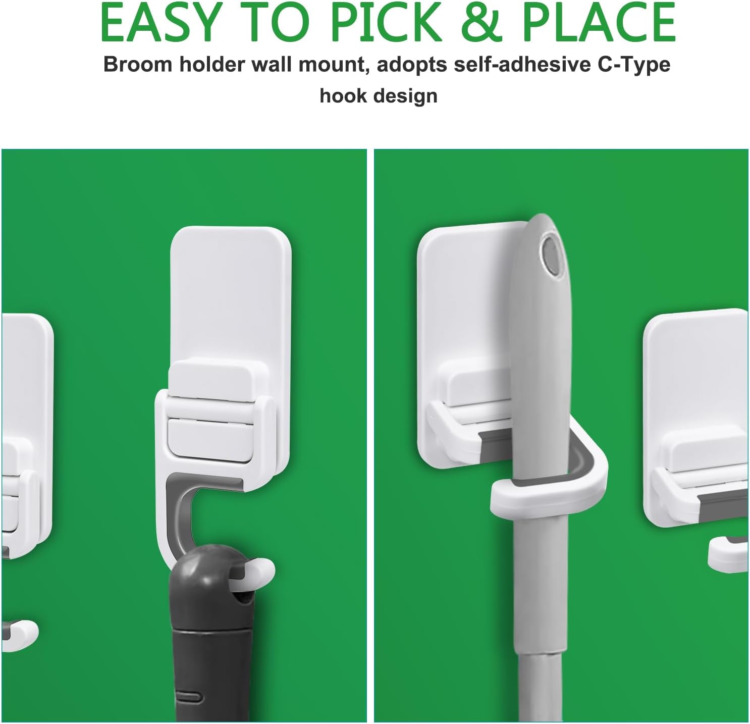 4pack Broom Holder Wall Mount Mop Holder Broom and Mop Gripper Self Adhesive No Drilling Anti-Slip Mop Handle Hanger Household Cleaning Organizer, Holds up to 6 lb
