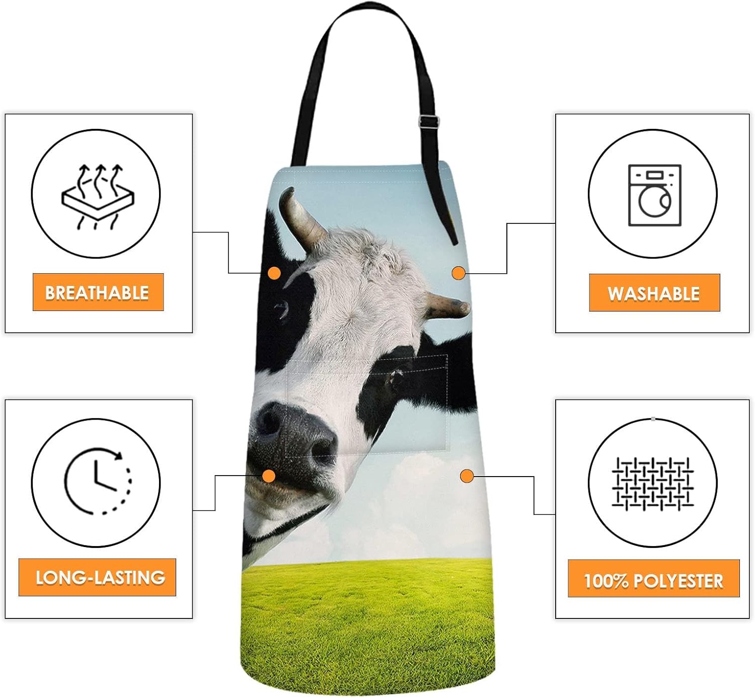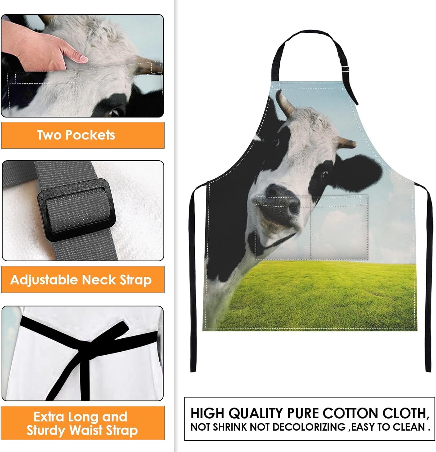 Britimes Apron Home Kitchen Waterproof Cooking Baking Gardening for Women Men With Pockets Funny Cow On Green Grassland 32x28 inch