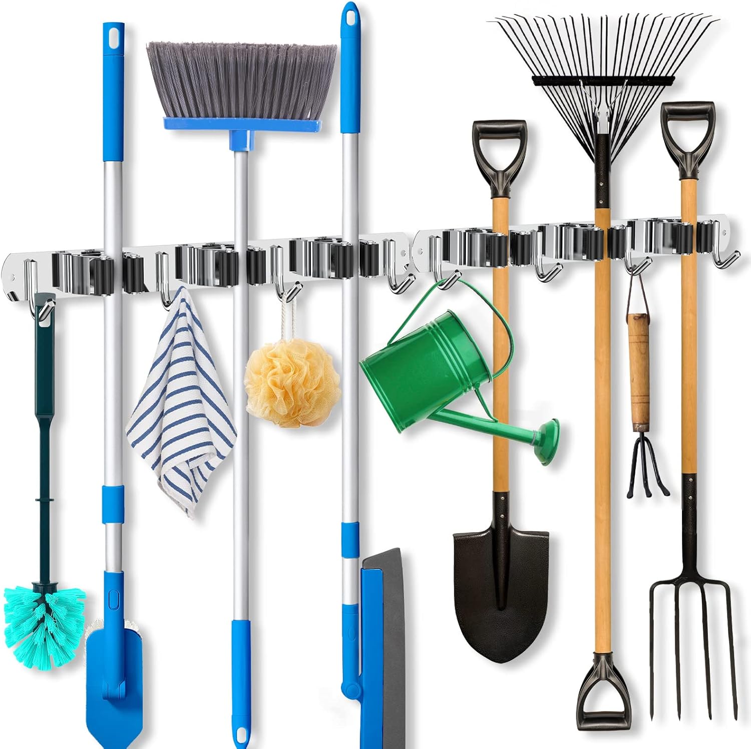 - 🏡【ORGANIZING & SAVING SPACE】Our mop and broom holder wall mount can keep messes organized in just 3 minutes. You can easily mount your broom, mops, rakes, brushes and any other tools, saving space for your kitchen, garage, garden, laundry, closets, bathroom, office, commercial, etc..