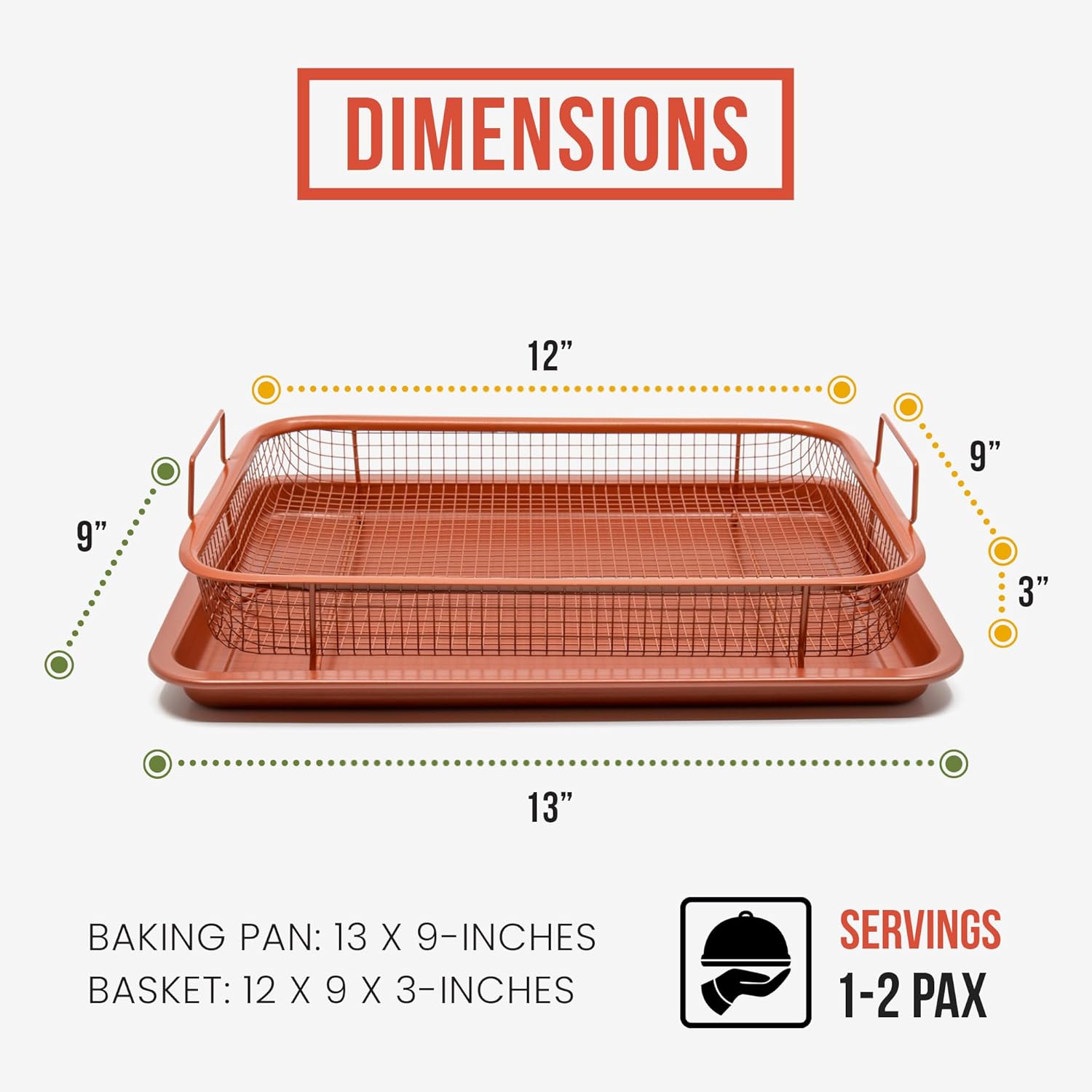- COOKING SIMPLIFIED. Use the crisper basket and tray together to roast and fry sides or entire meals! Or use the copper tray alone as a baking sheet for cookies, biscuits, rolls, and more. Large, easy grip handles help keep you safe from accidental burns and grease spills. While non-stick coating and dishwasher safe copper make meal-time effortless and clean up a breeze.