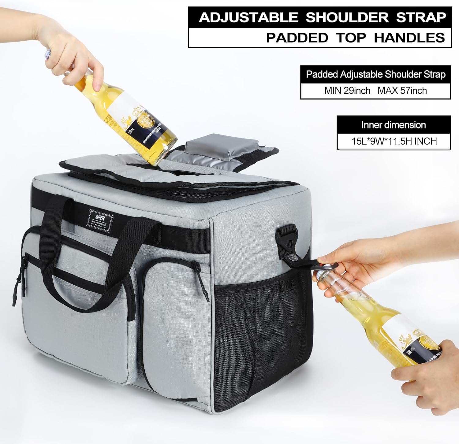 MIER 30L Extra Large Soft Cooler Bag with Bottle Opener for Camping Beach BBQ Grocery Golf Leakproof Picnic Lunch Bag, Collapsible, Top Flip Lid, 45Can (Grey)