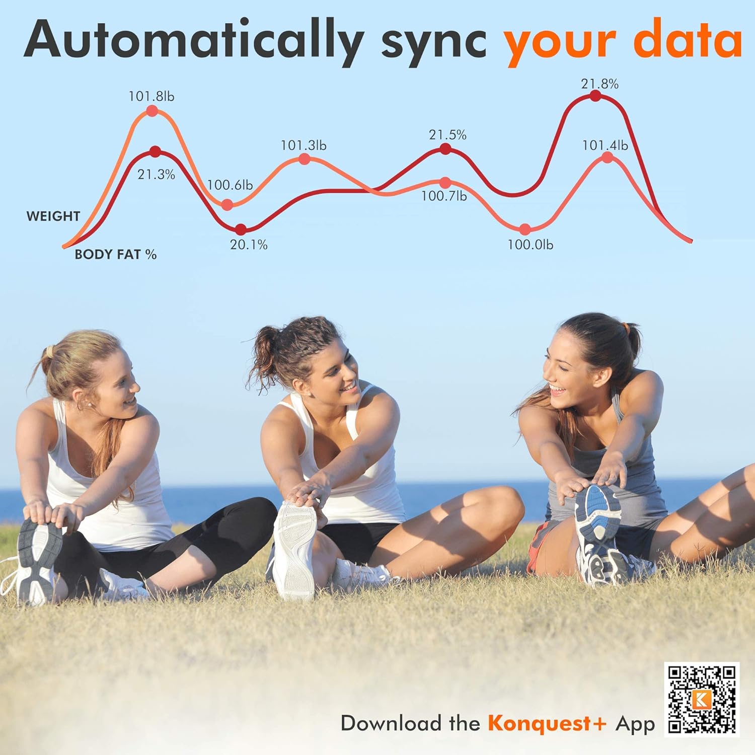 KONQUEST Smart Scale for Body Weight, Digital Bathroom Scale BMI Weighing Bluetooth Body Fat Scale, Body Composition Monitor Health Analyzer with Smartphone App, 400 lbs - White
