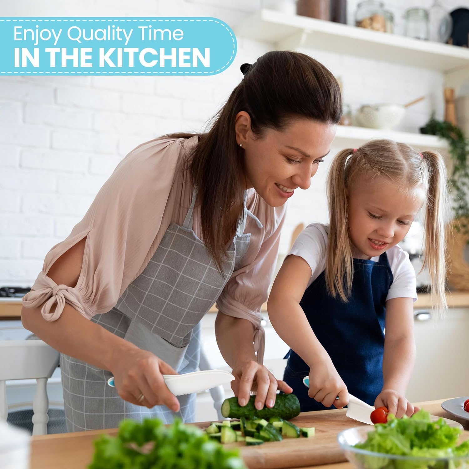 - MULTIPURPOSE SET: Watch your little munchkin enjoy helping you in the kitchen with these serrated edge kids knives. These kid safe knives are perfect for cutting bread, quesadillas, sausage, cheese, cakes, or vegetables and fruits like apples, zucchini, strawberries, avocados, bananas, cucumbers, and more.