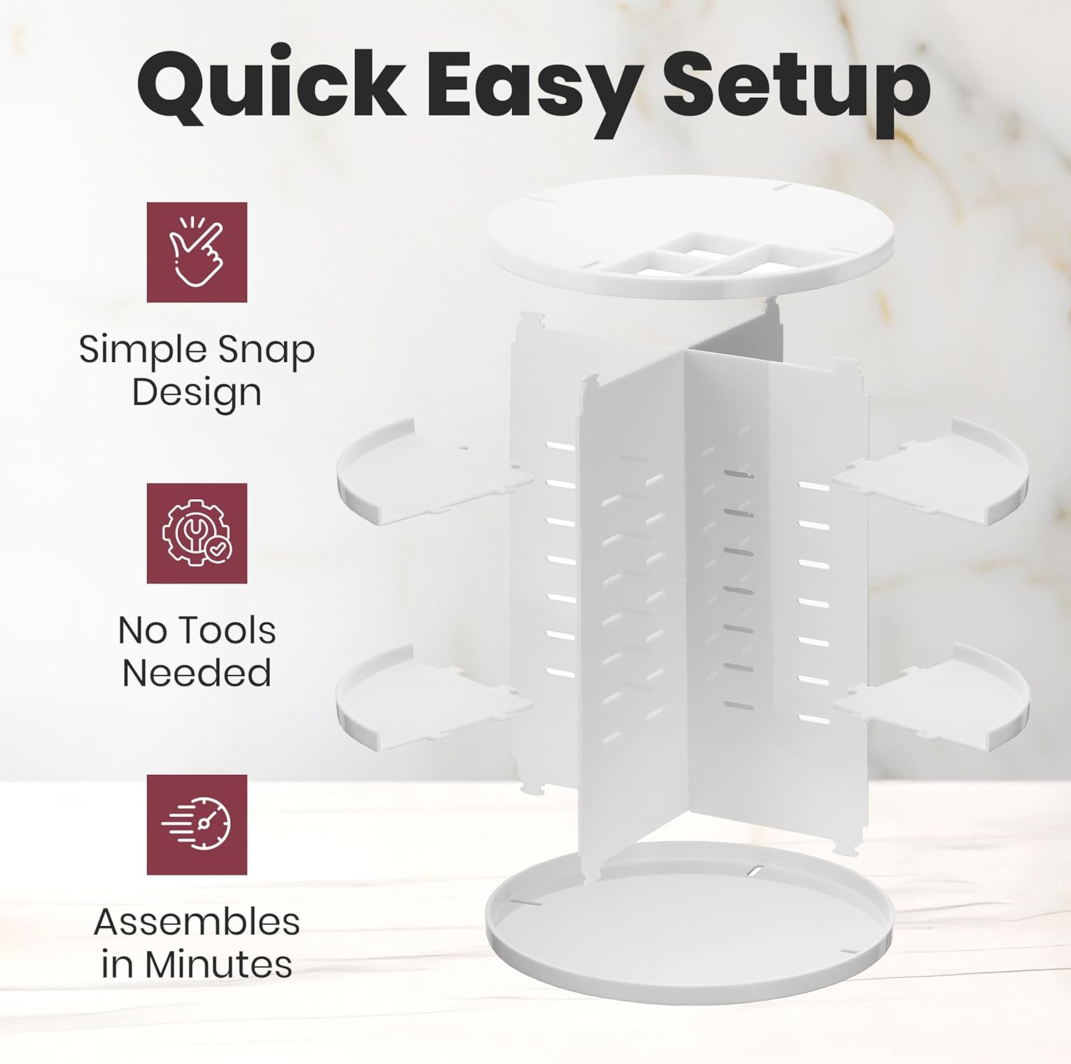 - STURDY AND DURABLE: Designed for durability, this revolving makeup organizer is constructed to withstand the weight of various cosmetic products, providing a stable and reliable storage solution