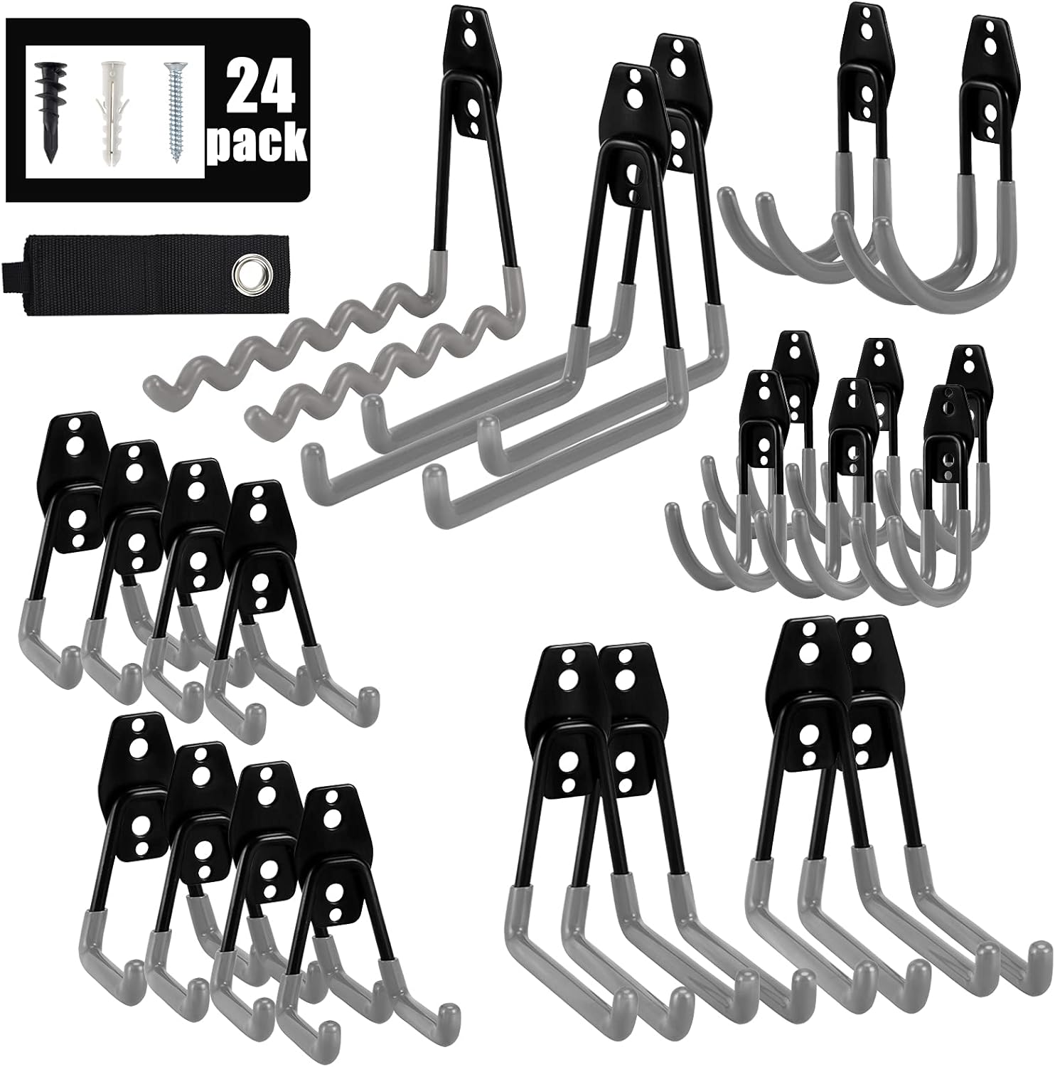 - 【Heavy Duty Garage Hooks for Multi-usage】We offer 6 varying sizes of garage hooks for varying usage: Small square hook*8, Chinese square hook*4, generous hook*2, small round hook*6, big round hook*2, wave hook*1, strap*1. Different size for different objects and weights. Really a garage organizer for you!