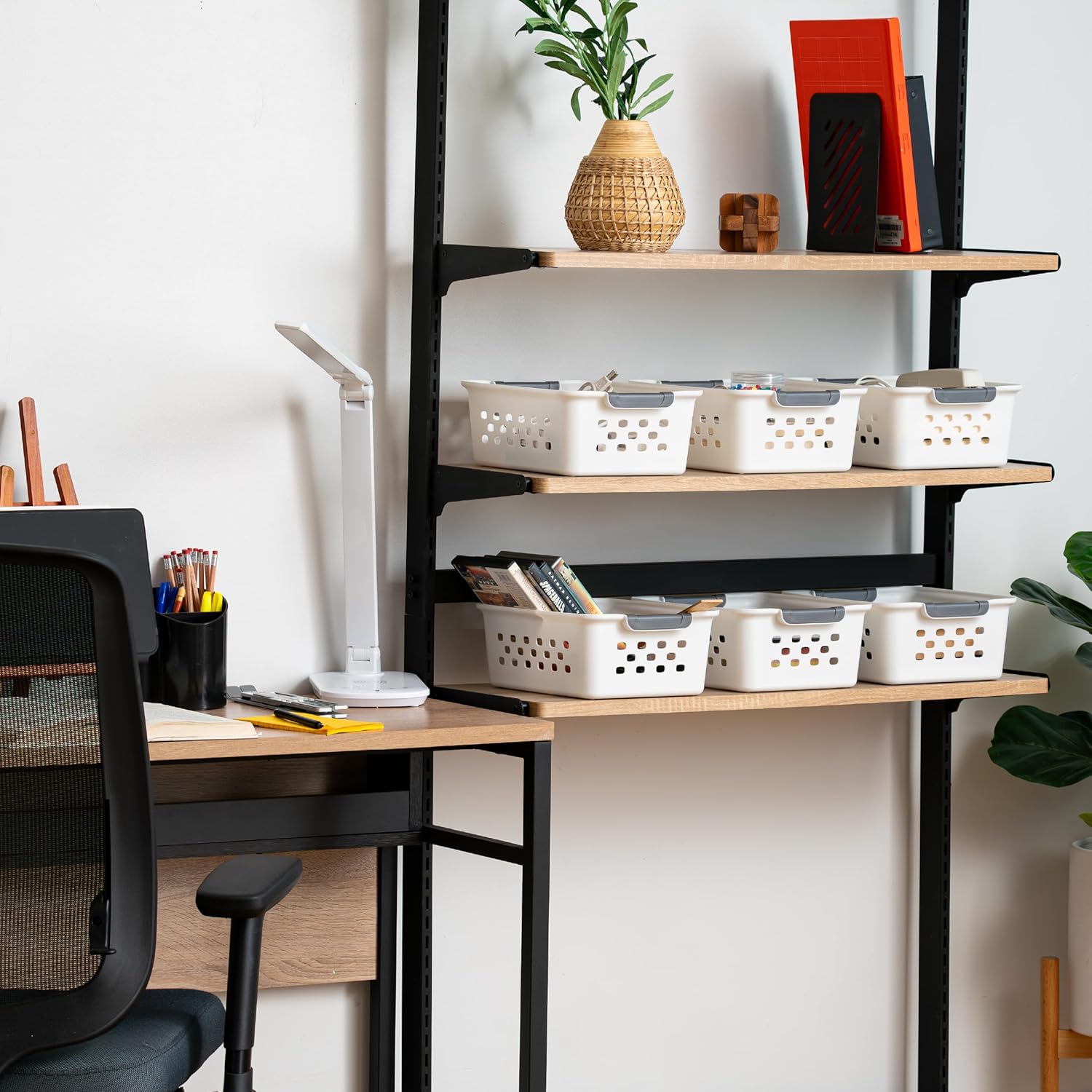 IRIS USA Plastic Basket, 6-Pack, Medium, Shelves Storage Basket for Organizing Pantry, Cabinet, Bedroom, Closet, Laundry Room, Office, White