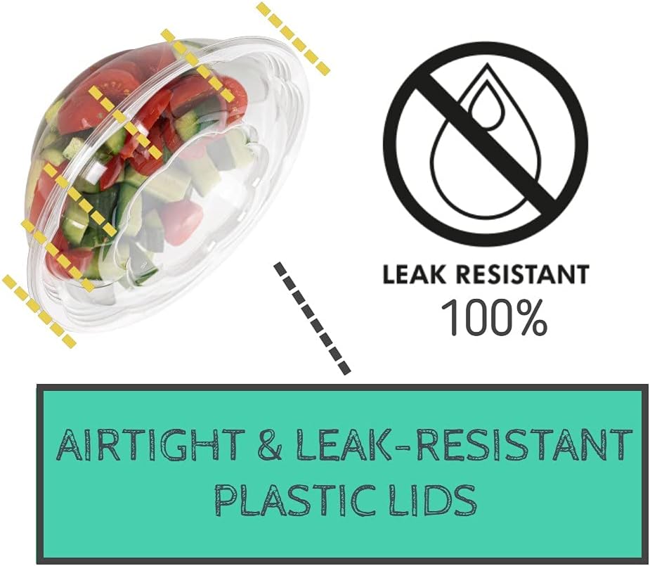 Smygoods Disposable Plastic Salad Bowls with Airtight Lids Ideal for Meal Prep, Takeout, Catering, Parties, Picnics, and Food Storage, Stackable, Leak-Proof