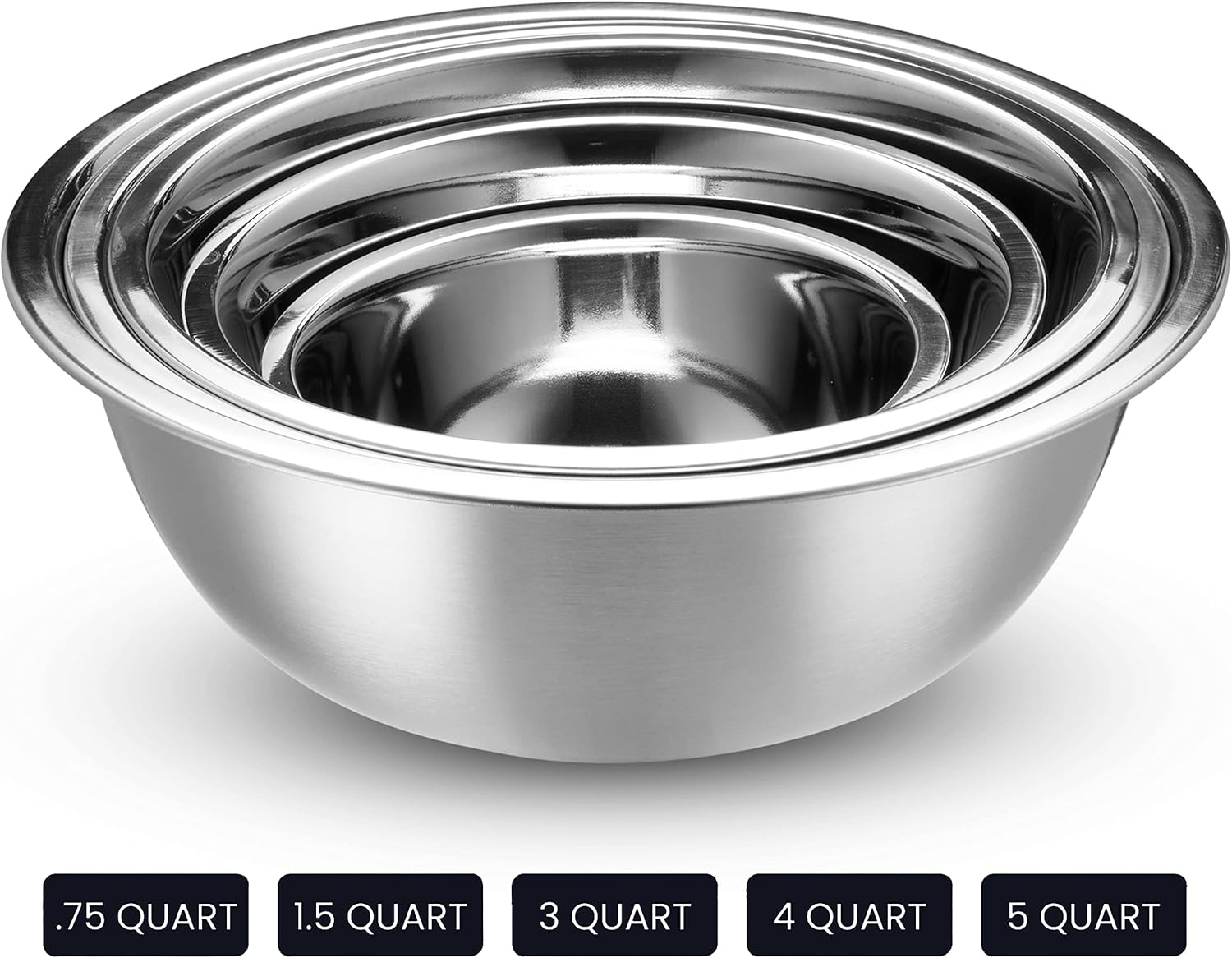 - Stainless-Steel Craftsmanship – These deep mixing bowls are BPA free, food-grade safe, rust and corrosion resistant, and feature a smooth steel design easy on utensils.