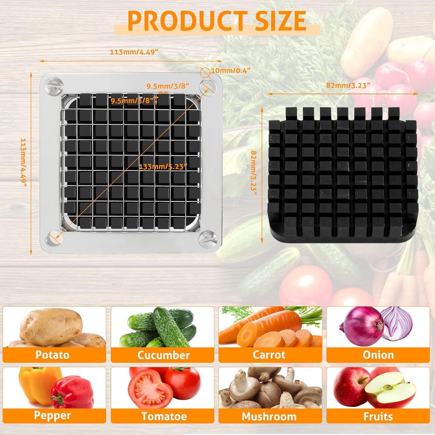 - 【Widely Application】WICHEMI replacement blade compatible with most commercial vegetable choppers. It can be applied to cut potatoes, carrots, cucumbers, peppers, onions, mushrooms, fruits and other vegetables. Package Content: 2 x Vegetable Chopper Dicer Blade (3/8")
