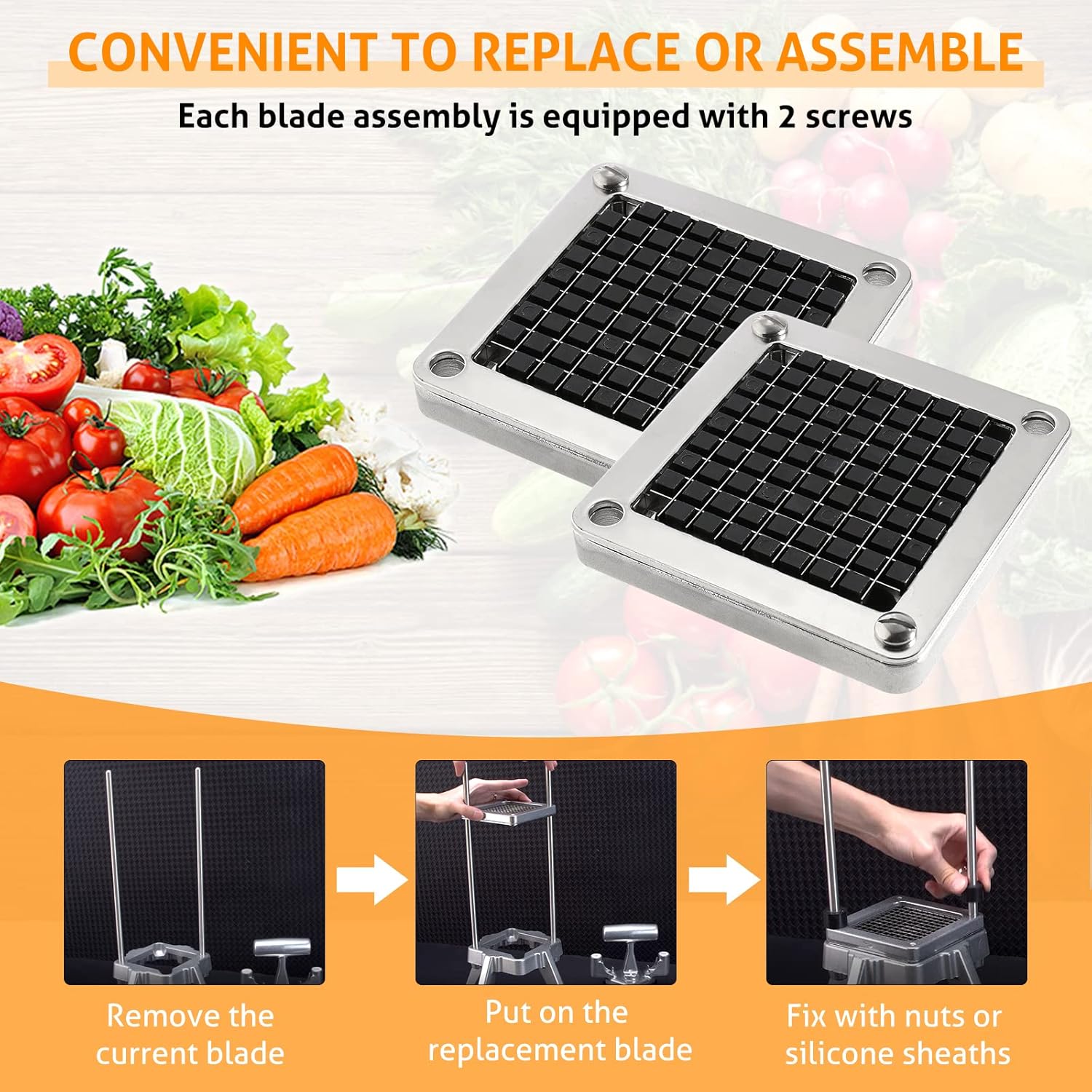 WICHEMI Replacement Blades 3/8" - Commercial Vegetable Chopper & Dicer, Stainless Steel, Onion & Tomato Cutter (2 Pack)