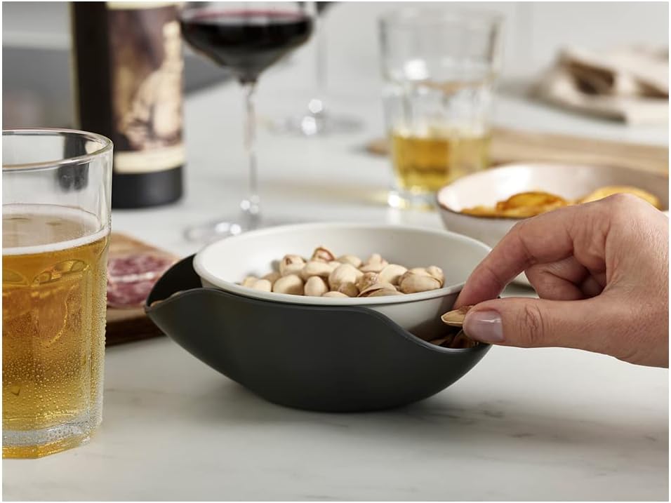 Joseph Joseph Double Dish Pistachio and Snack Serving bowl with Food Waste Compartment, BPA-Free - Grey