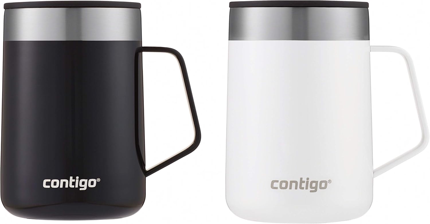 Contigo Streeterville Stainless Steel Travel Mugs 14oz, Stylish Duo Pack with Splash-Proof Lid, Vacuum-Insulated Coffee Mugs with Handle & Grip Base, Dishwasher Safe - Licorice & Salt