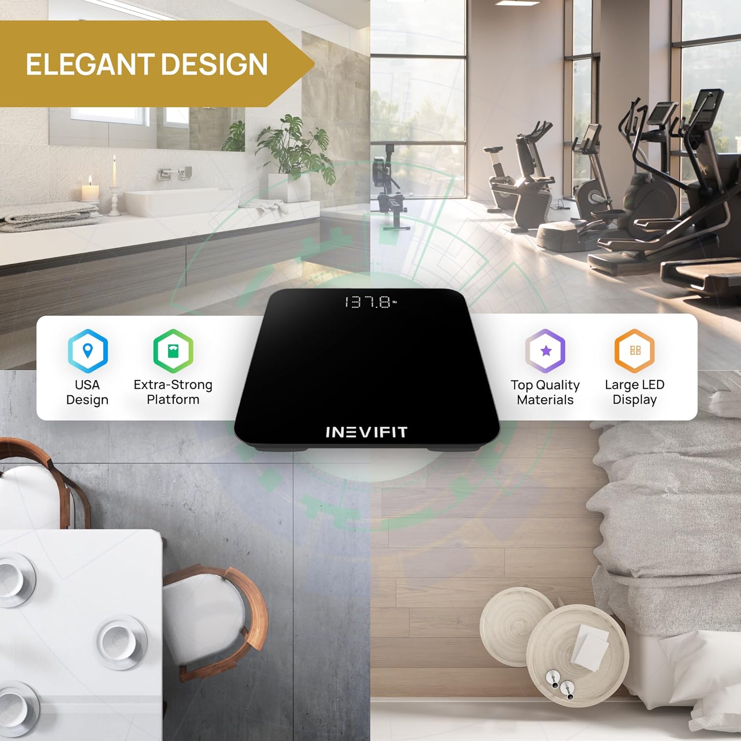 - STAY CALM & GET YOUR TRACK ON: The INEVIFIT Smart Digital Scale is made to stand the highest standards for the everyday user. You can rest assure that you will be given the ultimate INEVIFIT experience.