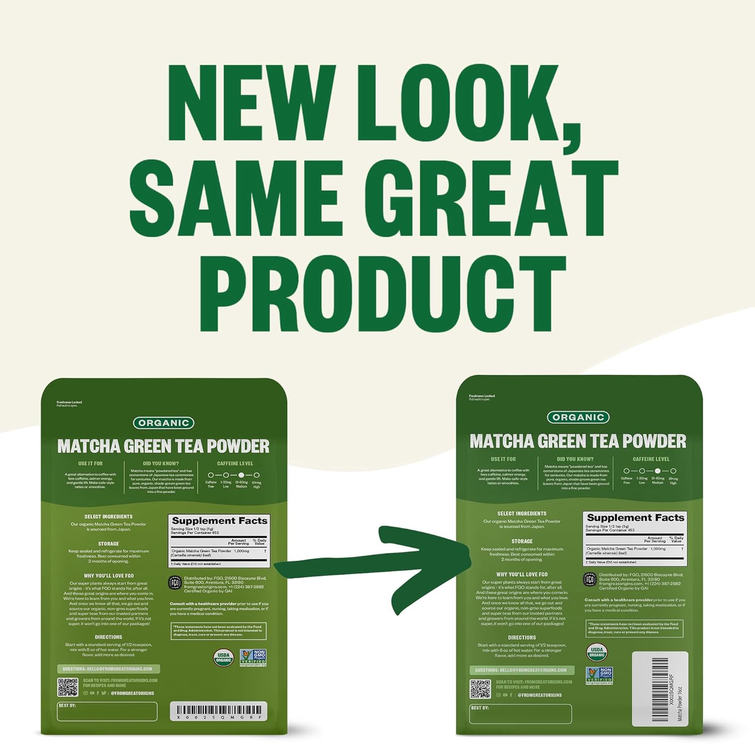 FGO Organic Matcha Green Tea Powder, Japanese Culinary Grade for Cooking, Baking, or Smoothies, 16oz Bulk Resealable Bag, Packaging May Vary (Pack of 1)