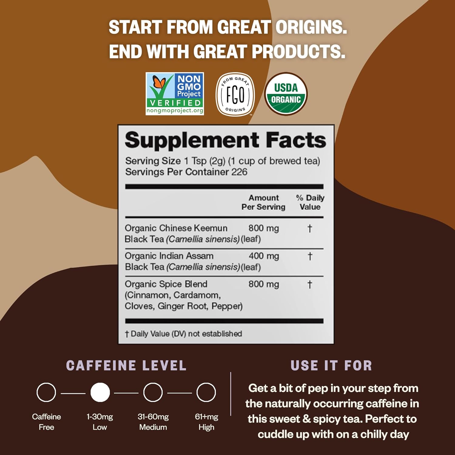 FGO Organic Chai Tea, 4 Ounce Loose Leaf, Resealable Bag, Packaging May Vary (Pack of 1)