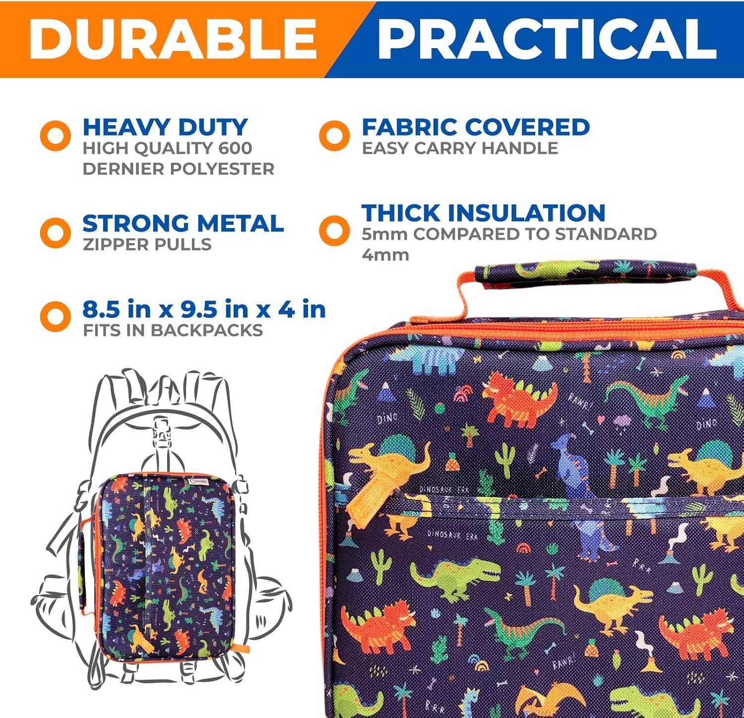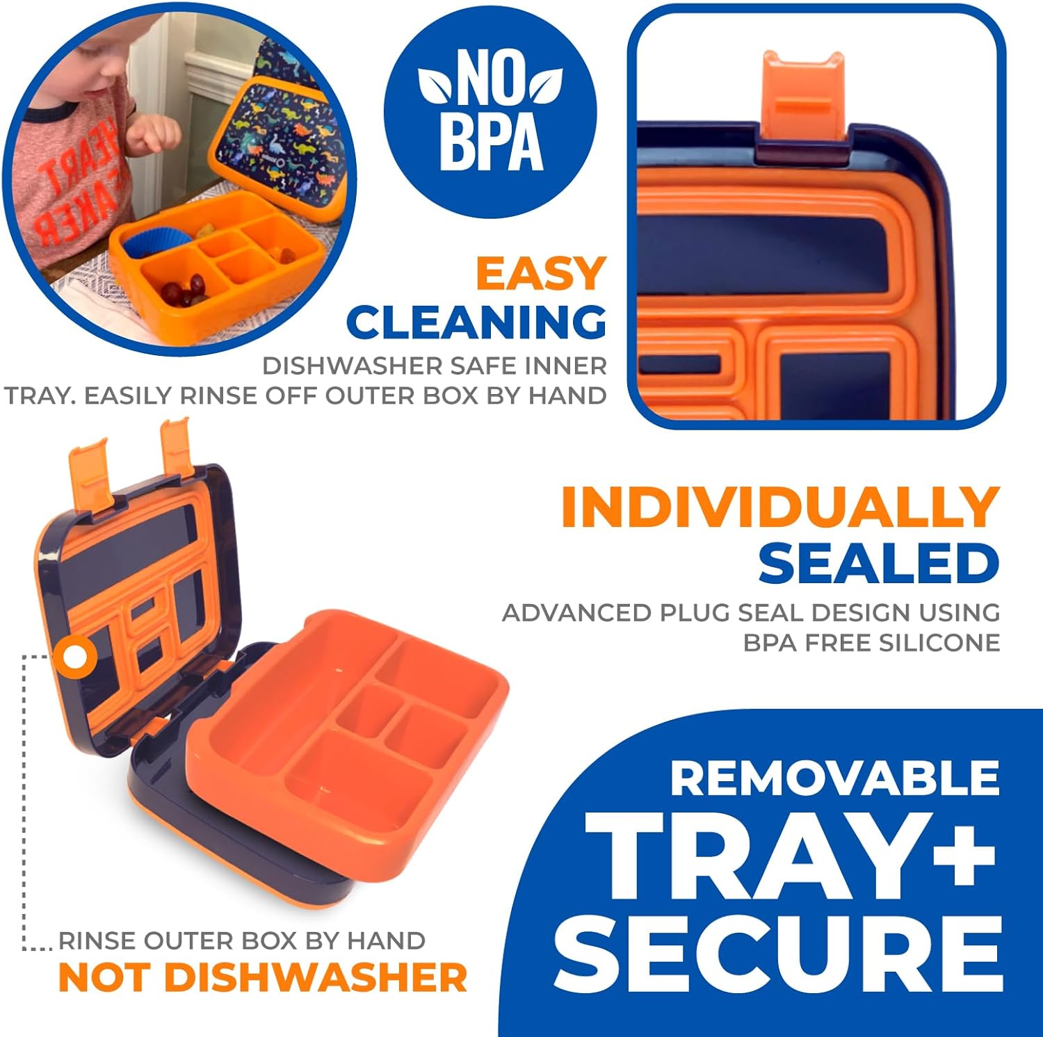 kinsho Bento Lunch Box with Insulated Bag, Water Bottle&Ice Pack Set for Kids Toddlers,5 Portion Sections, BPAFree Removable Tray, PreSchool Kid Toddler Daycare Lunches, Snack Container,Blue Dinosaur