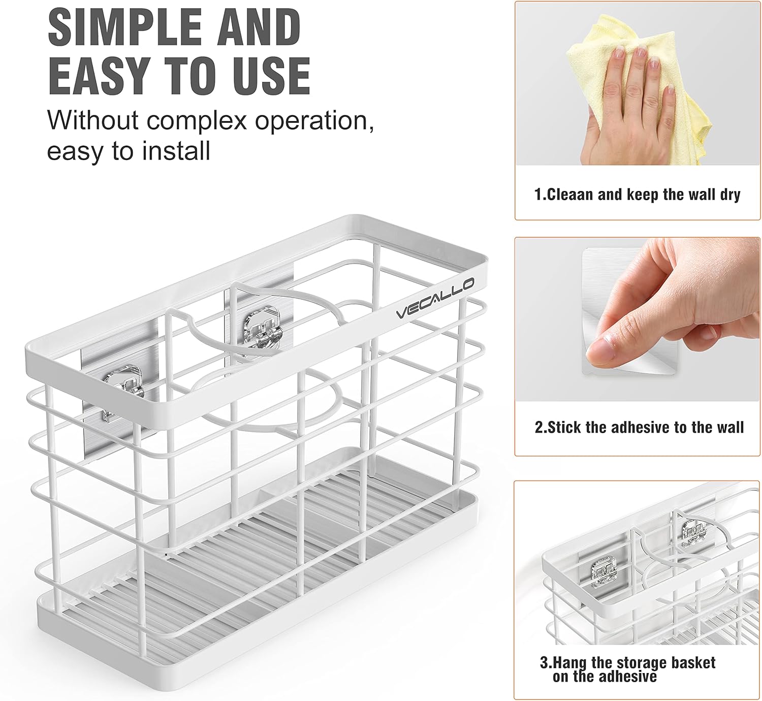 - 【Easy Installation】Bathroom organizer basket easily installs on bathroom or cabinet walls with the included Adhesive; Create additional storage space where you need it; Install inside a cabinet door for more discreet storage.