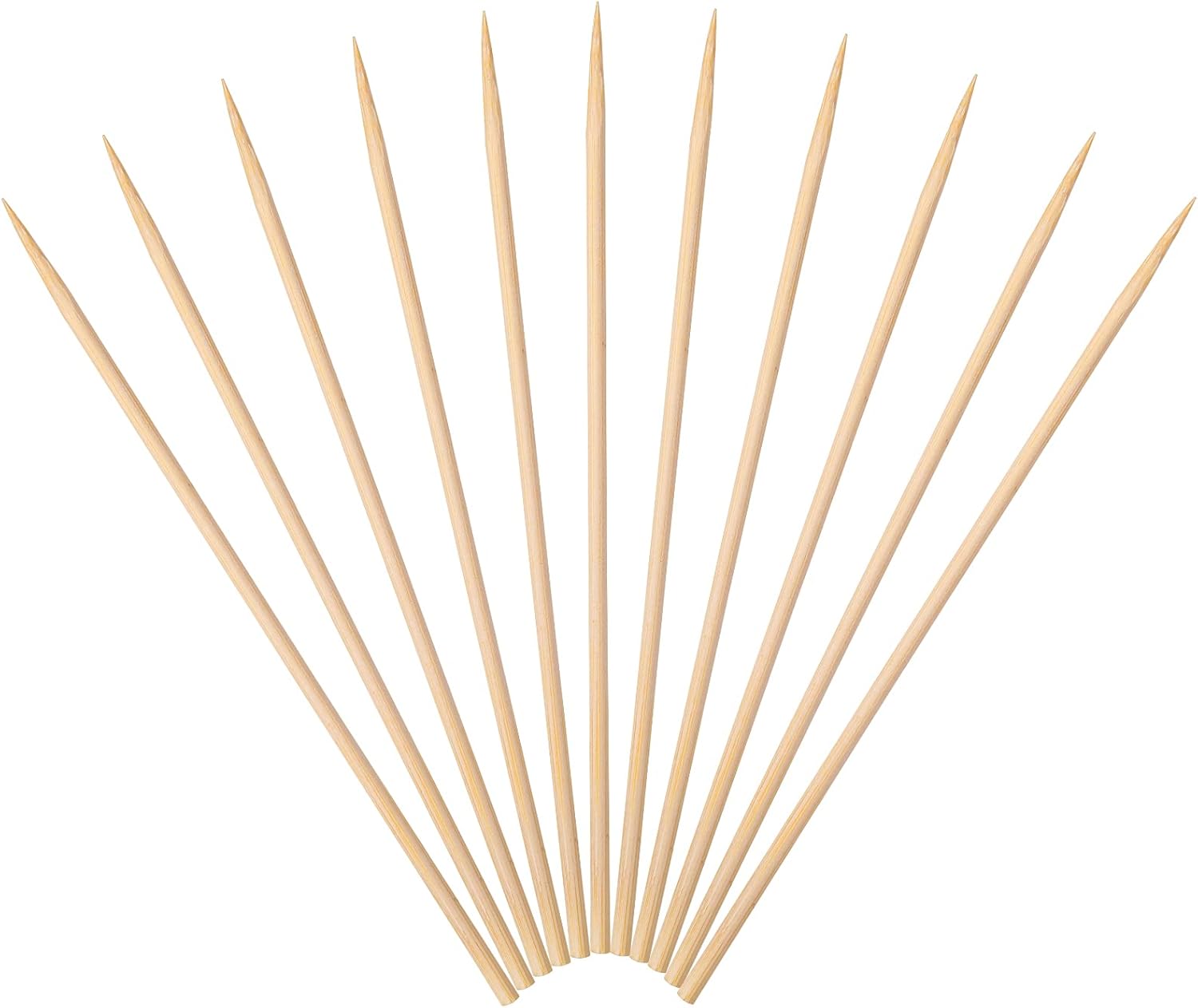 - ECO-FRIENDLY BAMBOO RAW MATERIAL AND PREMIUM CRAFTED: These skewer sticks are made of the finest bamboo outer green layer, which is the best bamboo part with the highest density and toughness. Even it’s a small item, we follow strict quality standards to make sure it’s sturdy and won’t splinter and break easily. Bamboo can grow fast in 3 years. Quite renewable; It’s pure natural, food safe, disposable and harmless to the environment