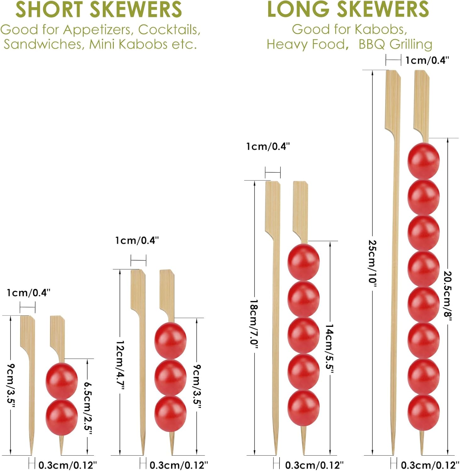 - MULTIPLE USAGES: 7 inch Paddle skewers are one of the most commonly used size to hold or pierce all kinds of daily food like fruits, veggies, meat, chicken, shrimps, sausages, thick tall sandwiches, sliders etc. You can use these sticks for a wide range like making fruit kabobs, shish kebabs, yakitori skewers, bbq grilling etc…. and anything else you can think of