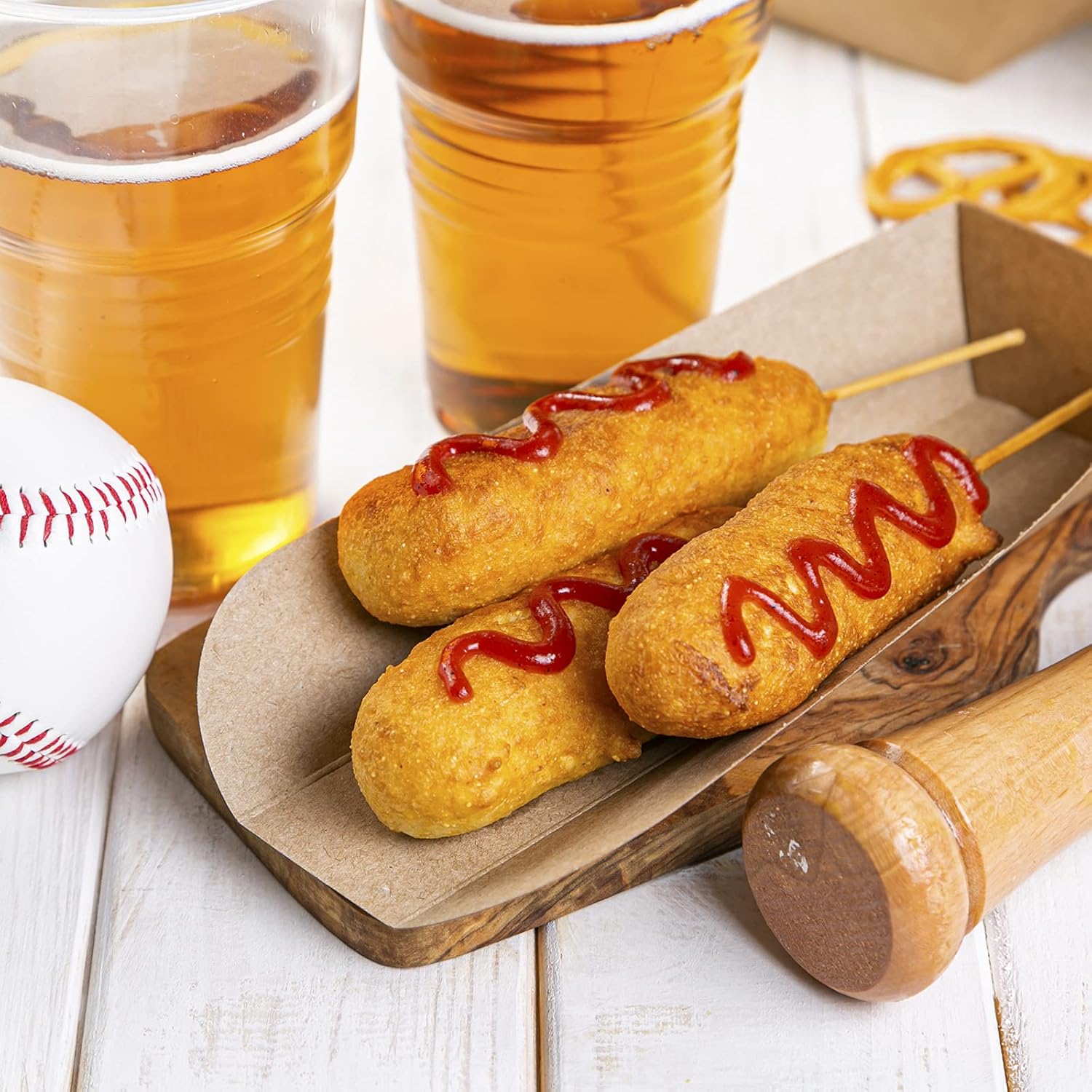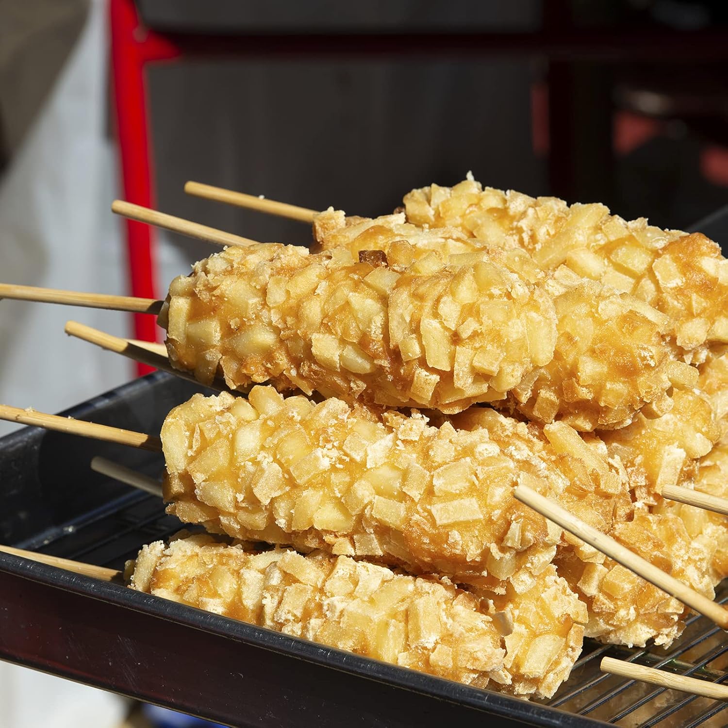 - MULTIPLE USAGES: These 7 inch bamboo sticks are much thicker than regular bbq kabob skewers. It’s usually used to hold or pierce American city chicken, Corn dogs, Candy Apples, Caramel Apples, Homemade Lollipops, Corn Cobs, Cake Pops, Kebabs, or any other heavy food on-a-stick you can think of. The semi-point end is to protect sticks from easy breaking when poking hard fruits. It looks blunt and smooth. Good to make DIY crafts too
