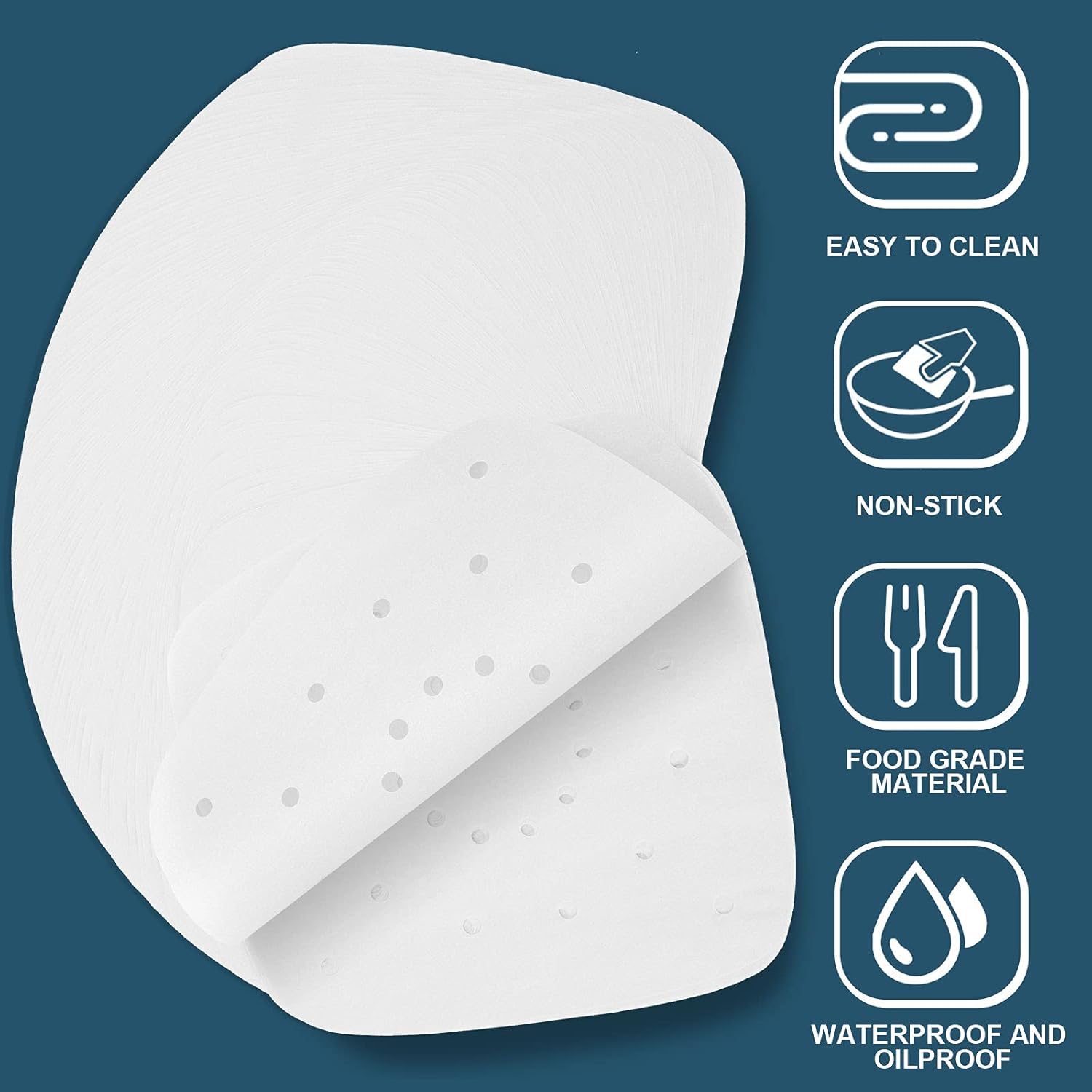 - 【Non-Stick & Easy to Clean】Perforated steaming paper for air fryer, steaming parchment liner, If you hate scraping food this is a must, Our air fryer parchment paper will protect your paper for air fryer , keep Bread, bacon, chicken, beef, turkey, buns pure taste, And keep your air fryer free from food residue, make clean up a breeze.