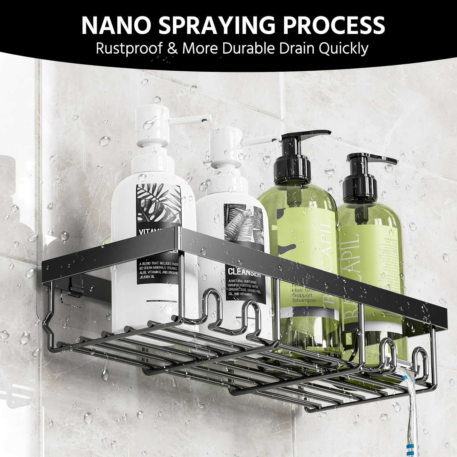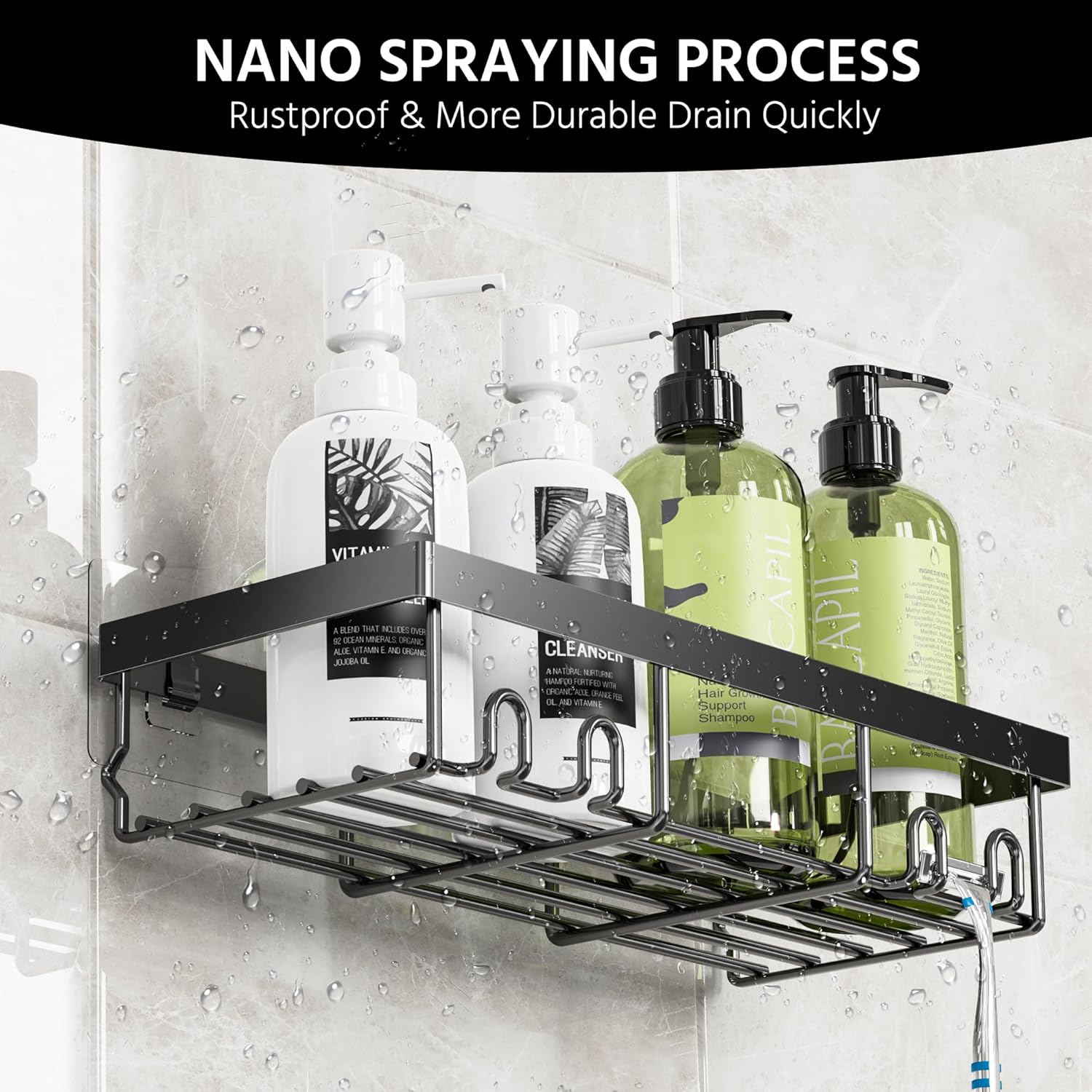 Moforoco 3-Pack Shower Caddy Basket Shelf with Soap Holder, No Drilling Traceless Adhesive Shower Wall Shelves, Rustproof Black Bathroom Shower Storage Organizer