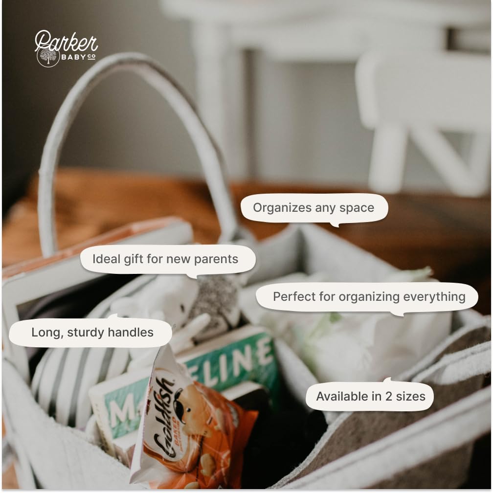 - QUALITY AND SATISFACTION GUARANTEE: Crafted from soft felt, our diaper caddy is built to last. The high-quality materials ensure durability and easy maintenance. We stand behind the product with a satisfaction guarantee, making your purchase risk-free. Elevate your diaper organization with the Parker Baby Diaper Caddy – the ultimate diaper bag essential and nursery organizer.