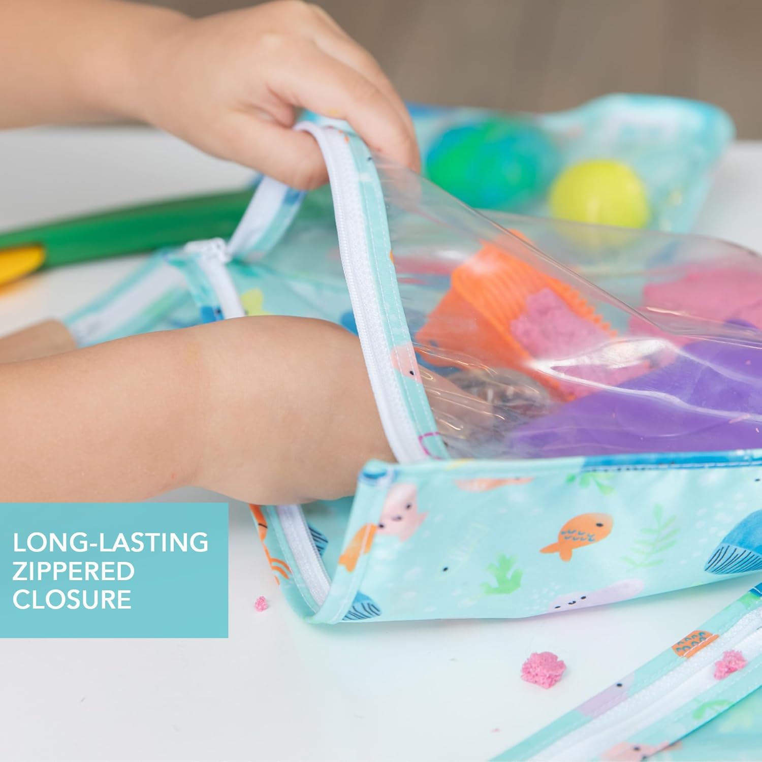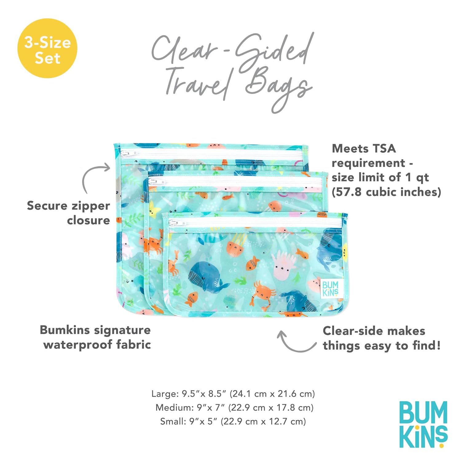 Bumkins Travel Bag, Toiletry, TSA Approved Pouch, Zip Bag, Quart Size Airline Compliant, Clear-Sided, Baby, Diaper Bag Organization, Makeup, Accessories, Packing, Set of 3 Sizes, Ocean Life Blue