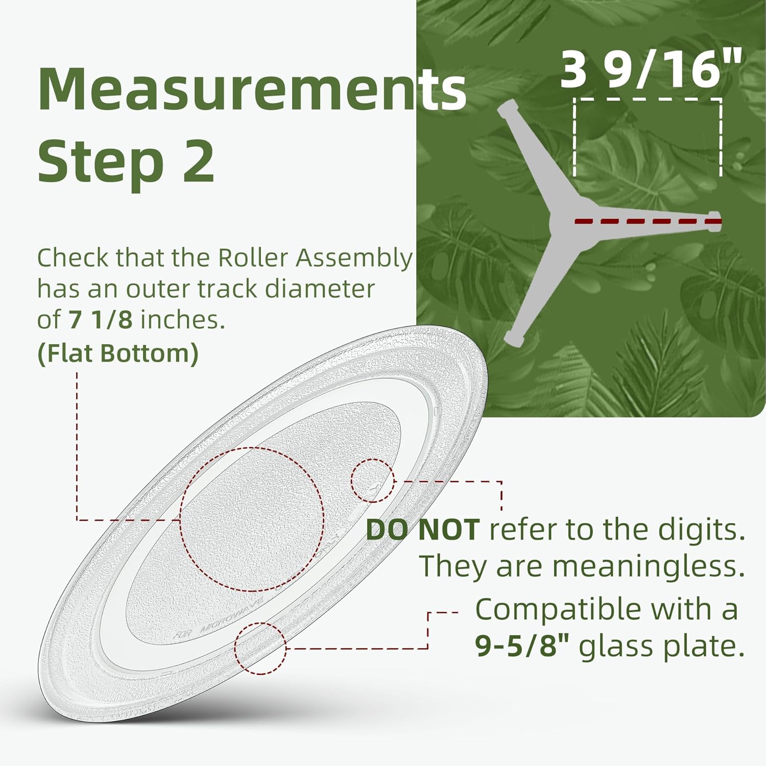 - This 9.6 IN Microwave Glass Turntable is a flat-bottom glass plate, compatible with a roller assembly of 3 9/16-inch radius. (The measurement is taken from the outermost edge of the roller to the center of the roller assembly)