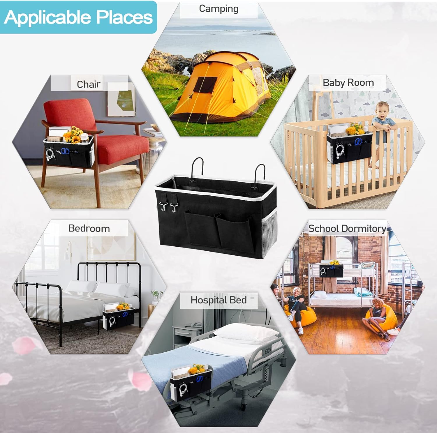- Multi-Scene Use: The bedside storage bag is designed with flexibility, suitable for a variety of scenarios. Whether it's a bunk bed, chair arm, RV, home, living room, or college dormitory, it is an ideal choice. It can meet the storage needs of different environments, bringing great convenience to your daily life.