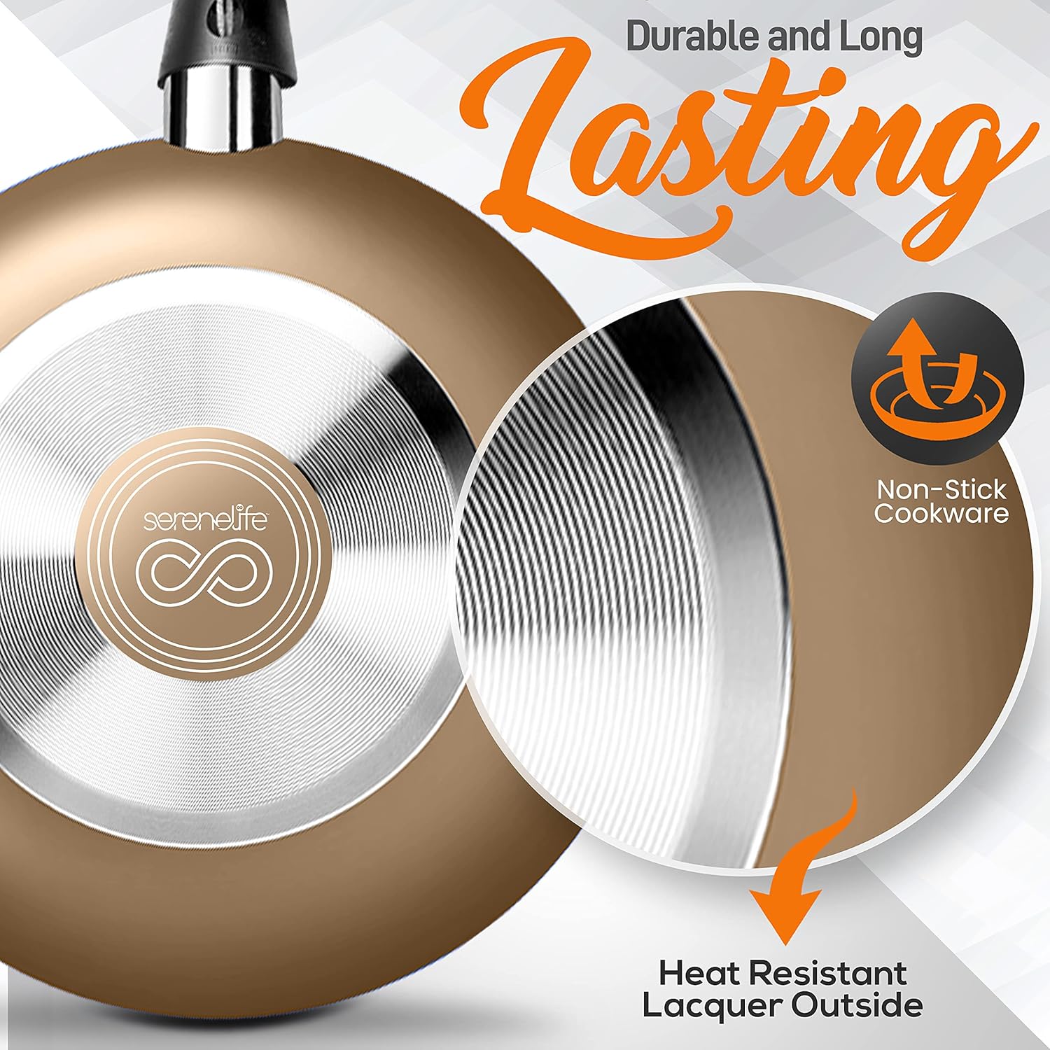 SereneLife Kitchenware Pots & Pans Basic Kitchen Cookware, Black Non-Stick Coating Inside, Heat Resistant Lacquer (15-Piece Set), One Size, Gold