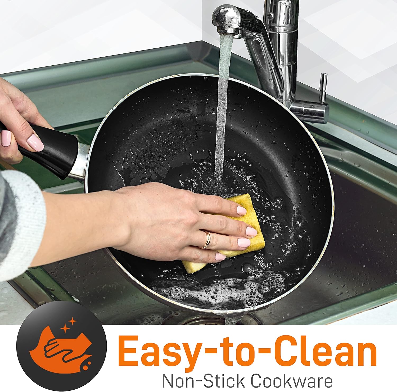 - NON-STICK SURFACE: This cookware set boasts a durable, PFOA/PFOS-free non-stick coating, ensuring effortless food release, easy cleaning, and healthier cooking. Its heat-resistant lacquer exterior stands up well to high temperatures.