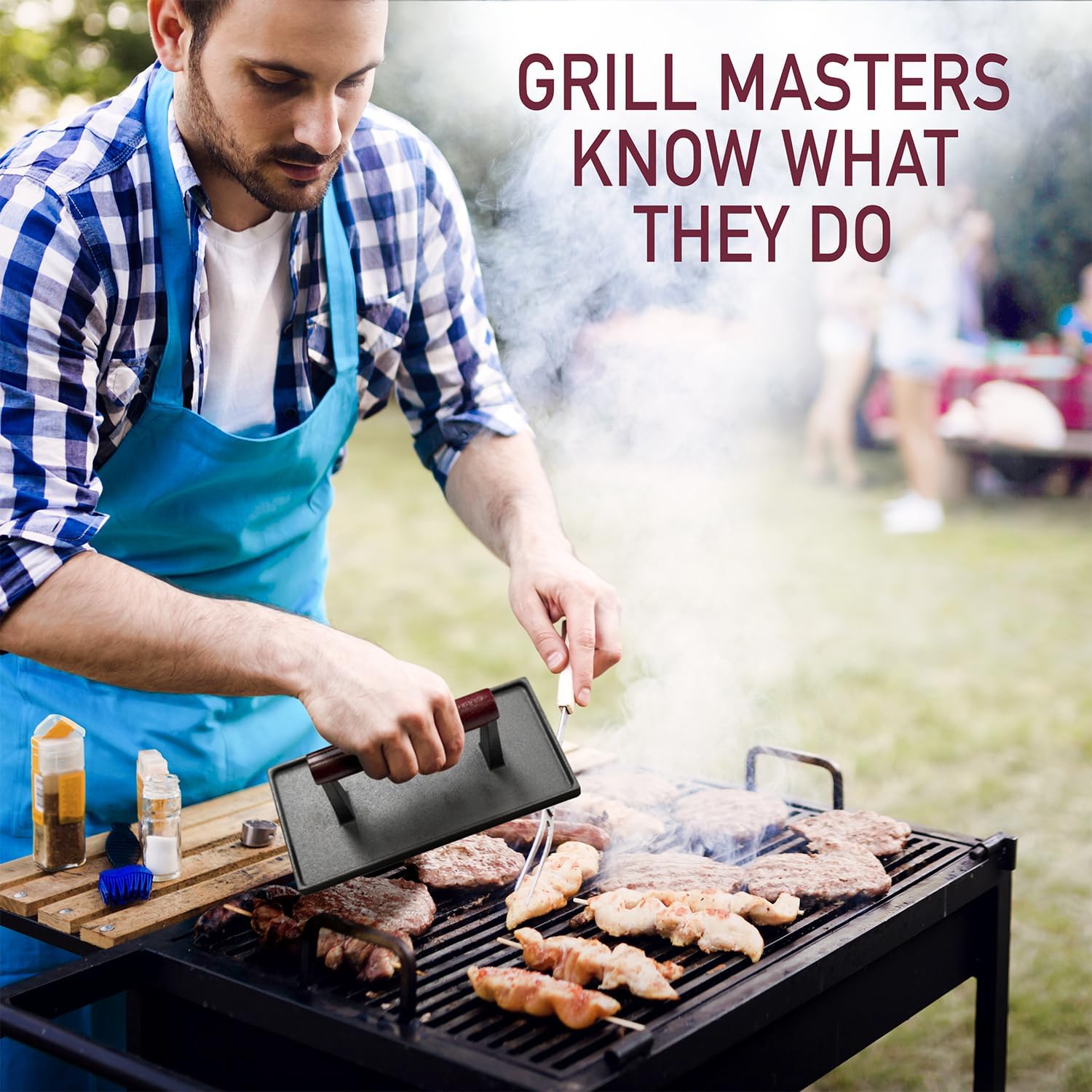 - Grilling Made Faster - Our pre-seasoned cast iron press transfers heat evenly on your meat, vegetables, and sandwiches to help you cook food quicker. You can use this on your grill, griddle, or pan.