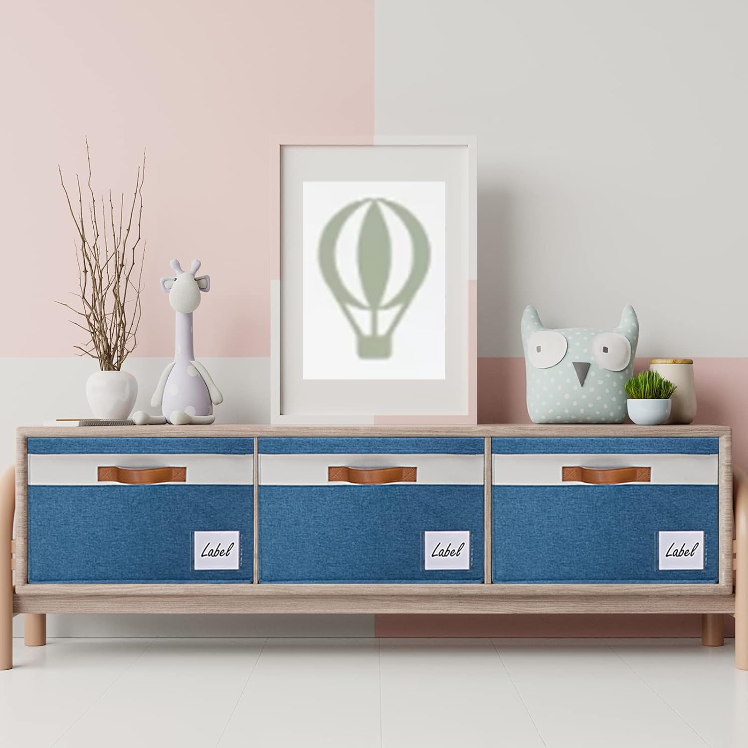 - 【LARGE STORAGE BINS WITH LIDS】Set of 3, dimensions (each): 15(L) x 11(W) x 9.7(H) inch, storage capacity of the extra large storage bins with lids are 26L, which can hold a large number of items to organize your home or office. Each fabric storage baskets with Lids has a eye-catching label to classify the stored items. The perfect size and neutral colors of the storage bins with lids match most of your home decorations and styles while keeping your home organized