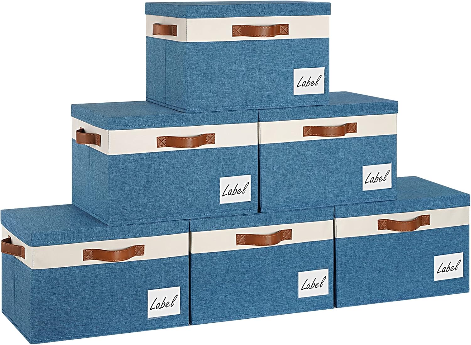 GhvyenntteS Fabric Storage Bins with Lid 6 Pack, Large Decorative Storage Boxes with Lids and Handles, Foldable Fabric Storage Baskets with Lid and Label for Home Office (Blue, 15" x 11" x 9.7")