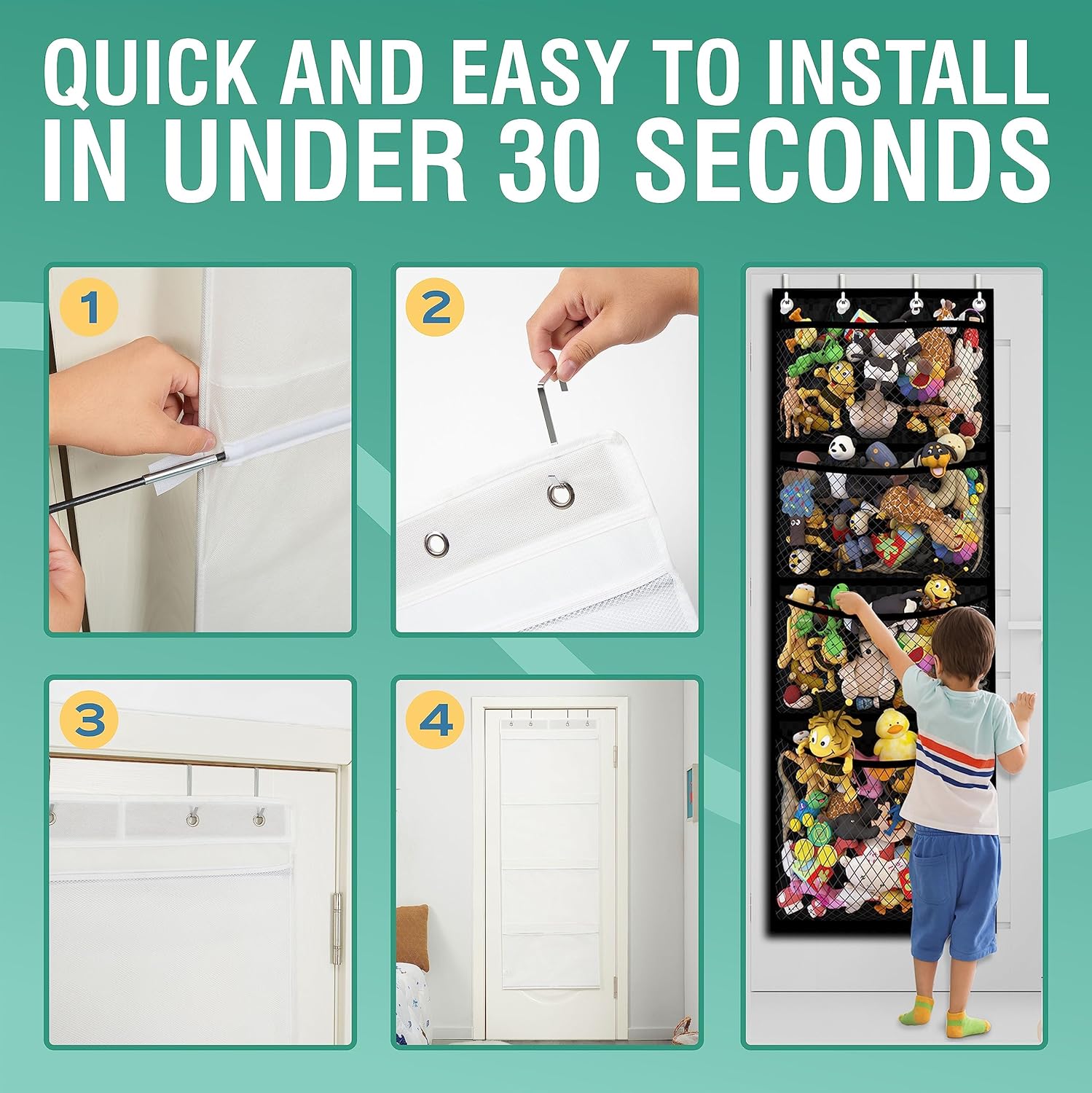 - 🧸 CONVENIENT STUFFED ANIMAL STORAGE - The perfect stuffed animal organizer to easily store and organize your favorite toys in our over the door storage unit. Easy to setup, durable, and allows kids convenient access to their toys. Equipped with breathable mesh pockets keeping your stuffies fresh and clean