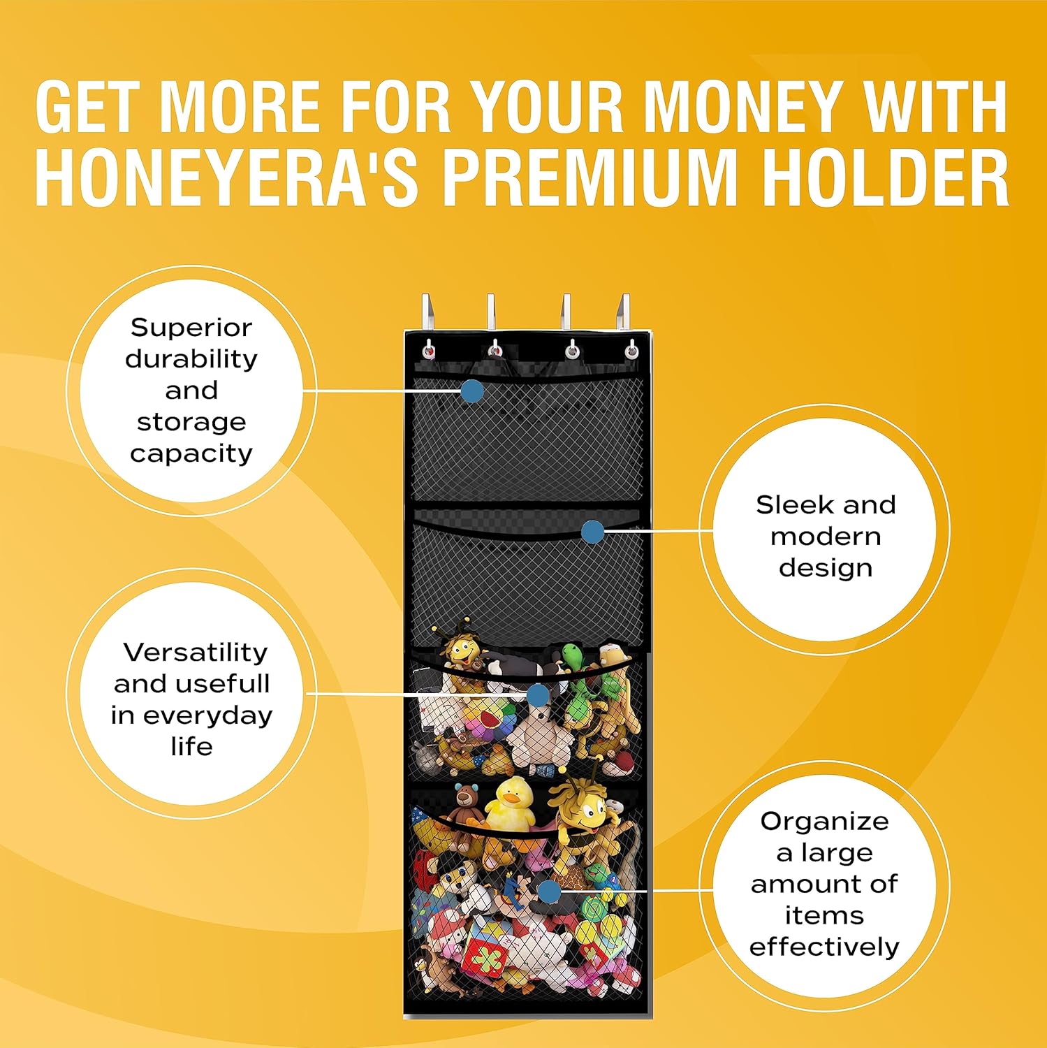 Honeyera The Original Stuffed Animal Storage (Patented) - Over Door Organizer for Stuffies, Toy Plush/Hammock Baby Hanging Storage Net Big Girls Toddler Large Bag Animals (Black)