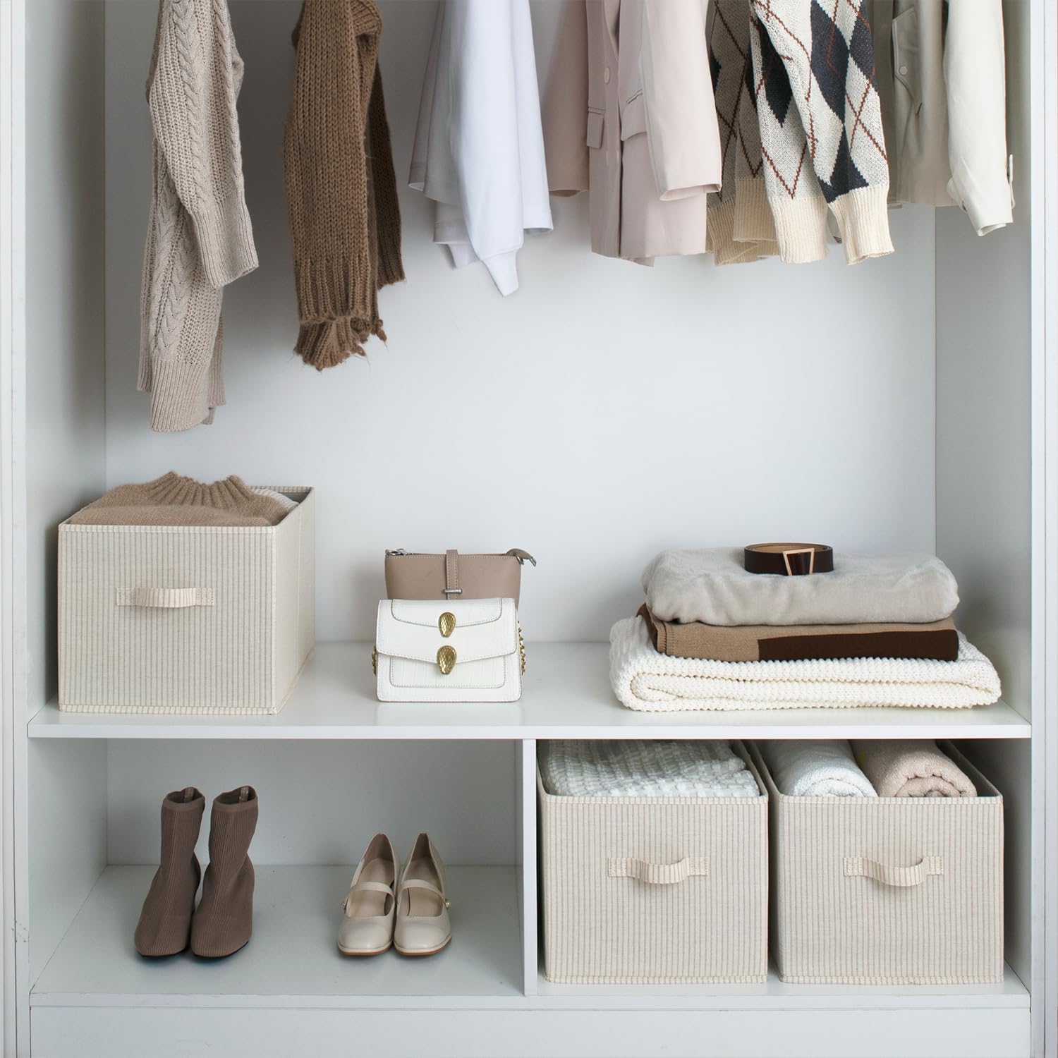 - Closet organizers with two sewn-in rope handles for easy carrying around.