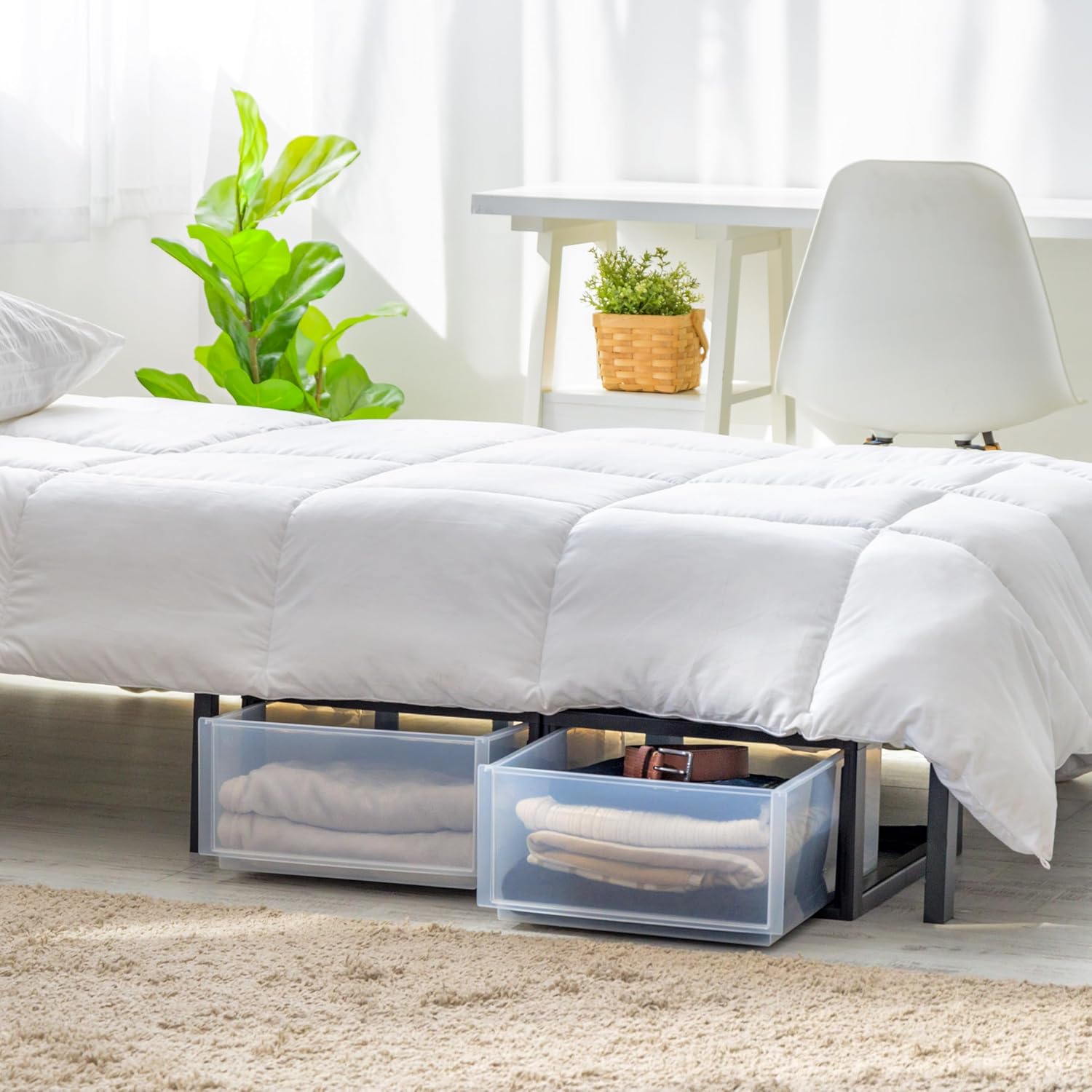 IRIS USA 30 Qt. Plastic Drawer Storage Organizer Stacking Drawers, 2-Pack, Stackable Unit with Sliding Drawer for Clothes Bedroom Kitchen Under Sink Pantry Craft Room Bathroom Dorm Office, Black