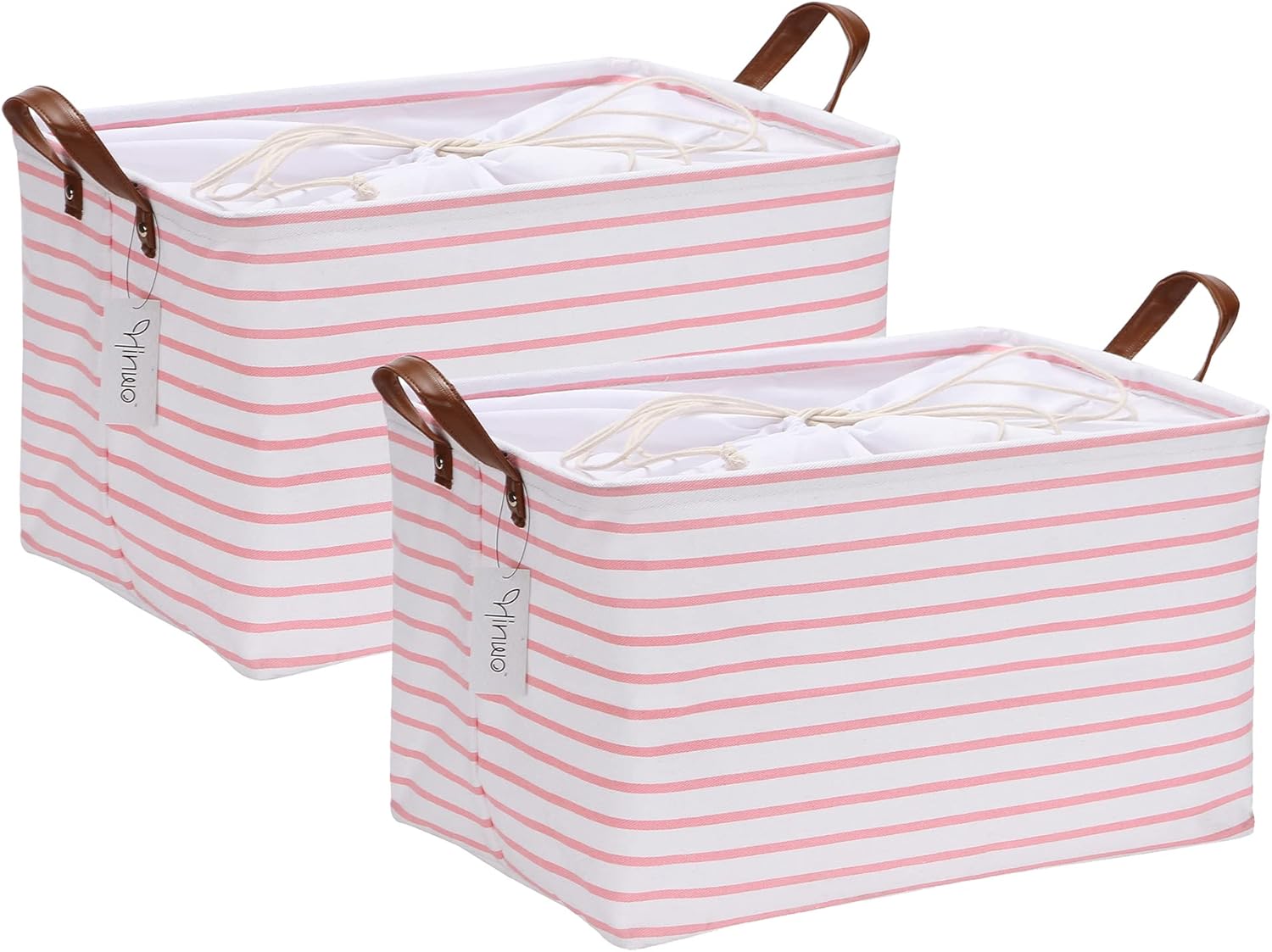 Hinwo 31L Large Storage Bins, 2-Pack Closet Organizers and Storage, Foldable Clothes Storage Baskets with Handles, Containers for Clothing, Blanket, Towels, Toys, Bedding (Pink Stripe)