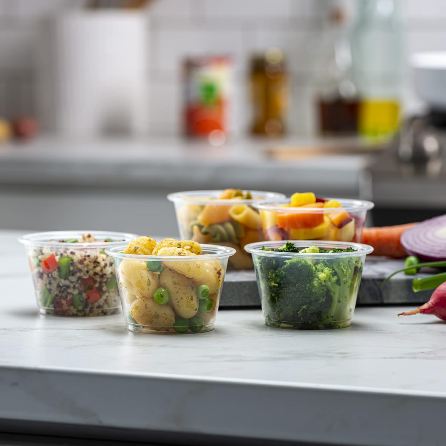 - {4 oz - 200 Cups} Clear Diposable Plastic Portion Cups No Lids, Small Mini Containers For Portion Controll, Jello Shots, Meal Prep, Sauce Cups, Slime, Condiments, Medicine, Dressings, Crafts, Disposable Souffle Cups & Much more