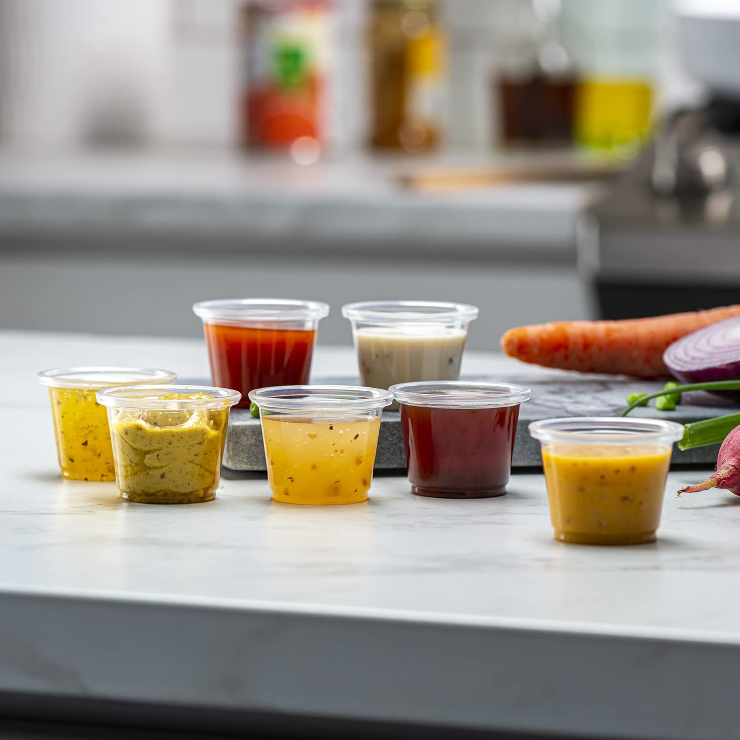 - Great use for Portion Cups, Meal Prep, Portion Control, Sauce Cups, Jello Shots, Condimens, Souffle Cups, Dressing, Slime, Small Containers, Medicine Cups, Sampling Container, Dips, Tastings, & Much more