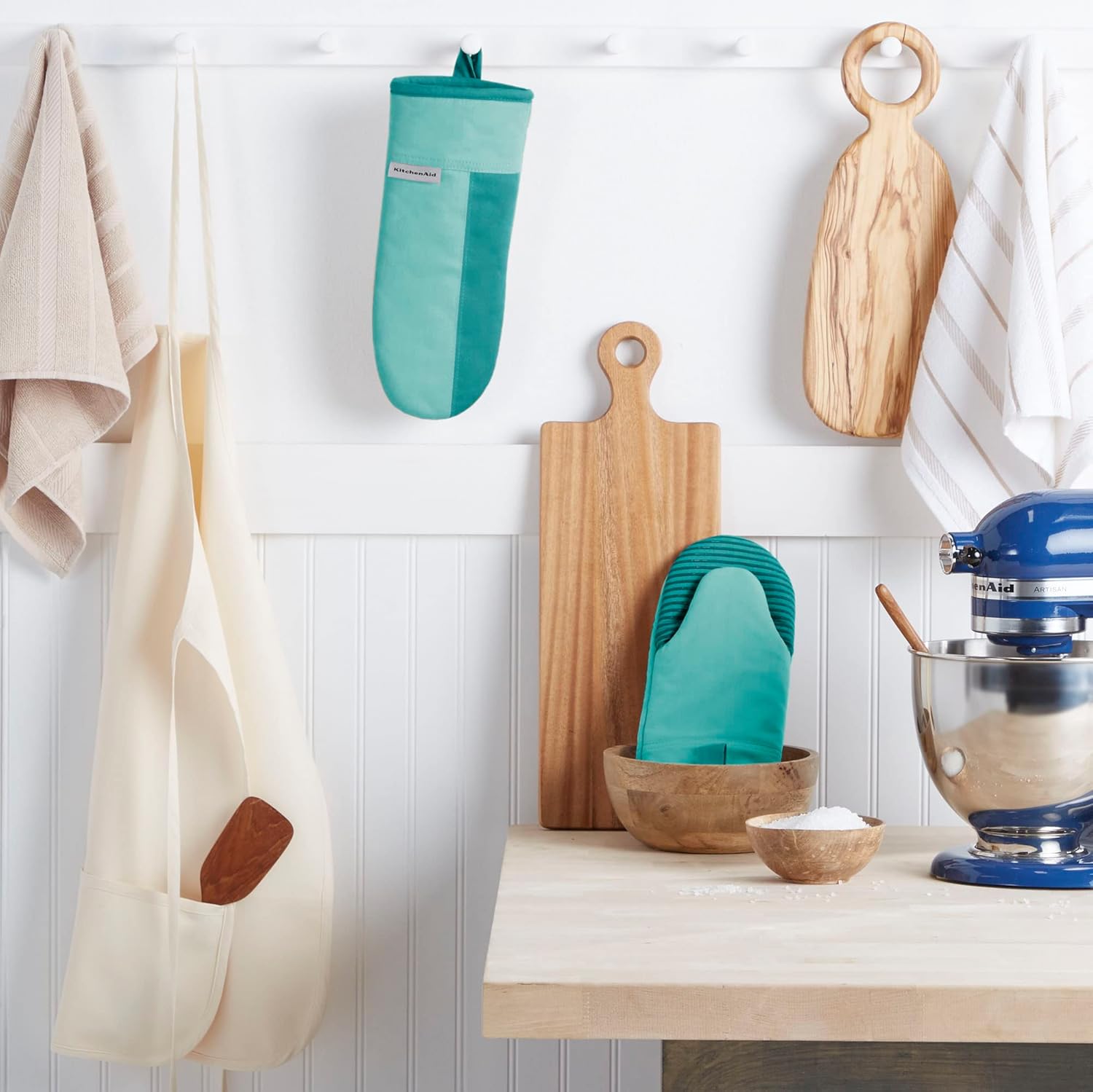 KitchenAid Beacon Two-Tone Non-Slip Oven Mitt Set, Aqua Sky, 5.75"x13", 2 Piece