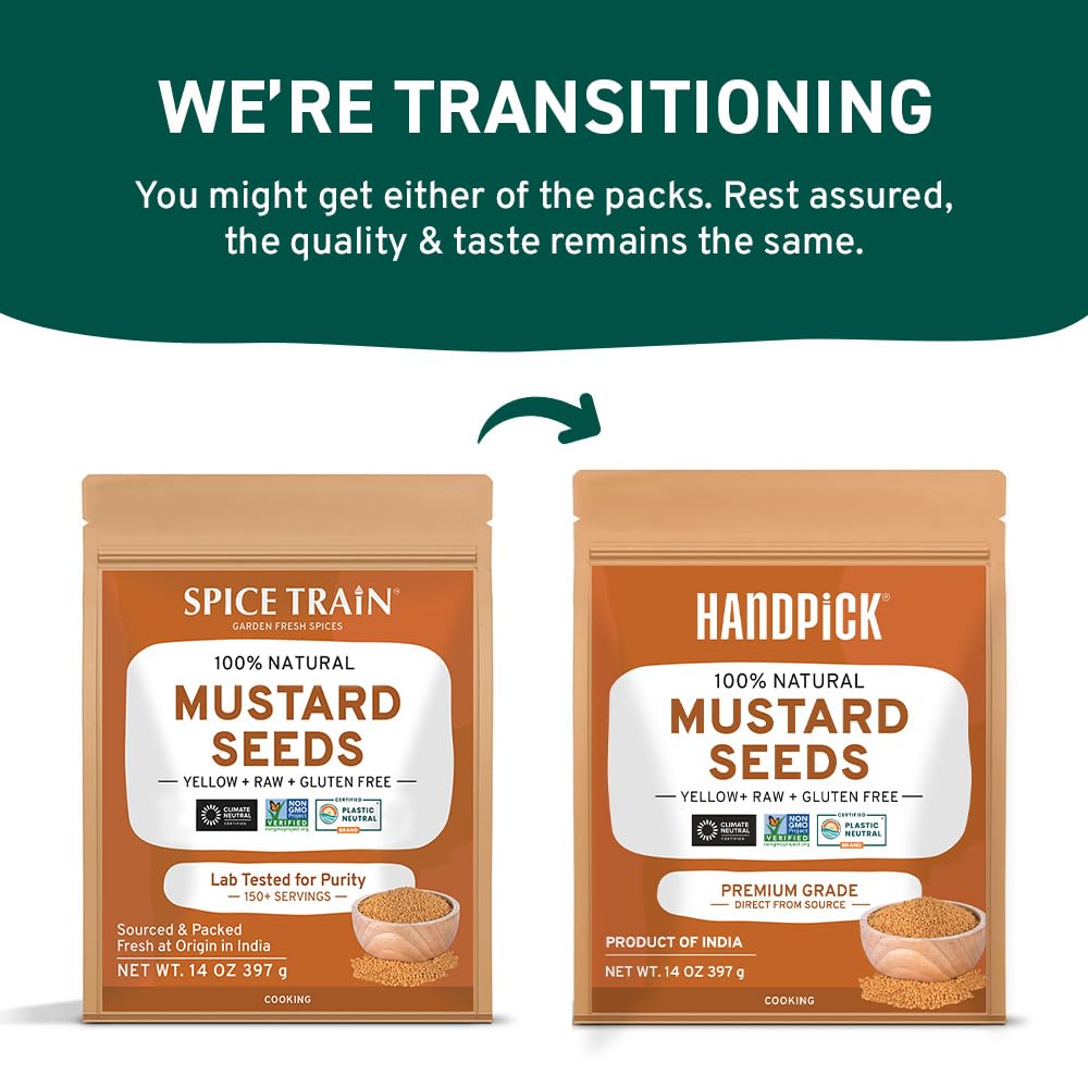 HANDPICK Yellow Mustard Seed (397g/14oz) Non GMO, Gluten Free, 100% Raw, Sourced from India, For Cooking, Pickles, Packed in Resealable Ziplock Pouch