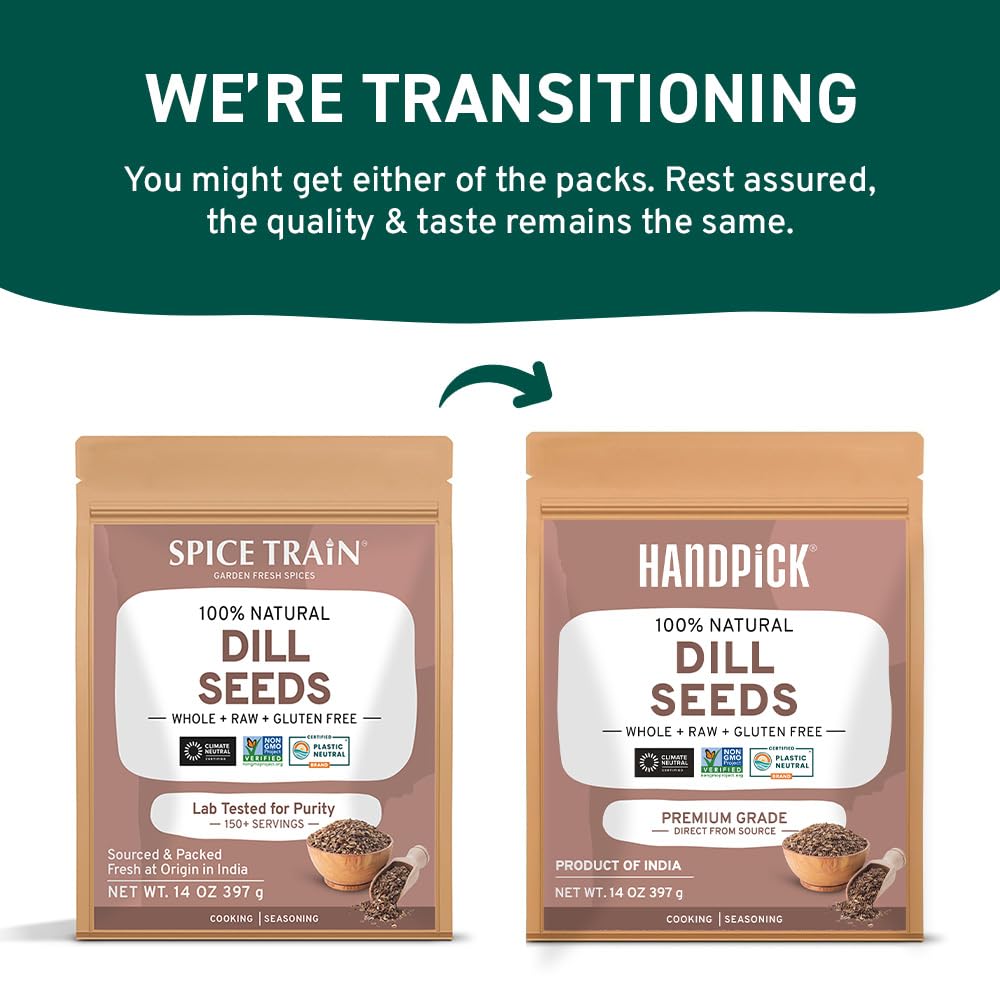 HANDPICK Dill Seeds (397g/14oz) Non GMO, Gluten Free, 100% Raw, Sourced from India, For Cooking, Drinks, Packed in Resealable Ziplock Pouch | For Pickling