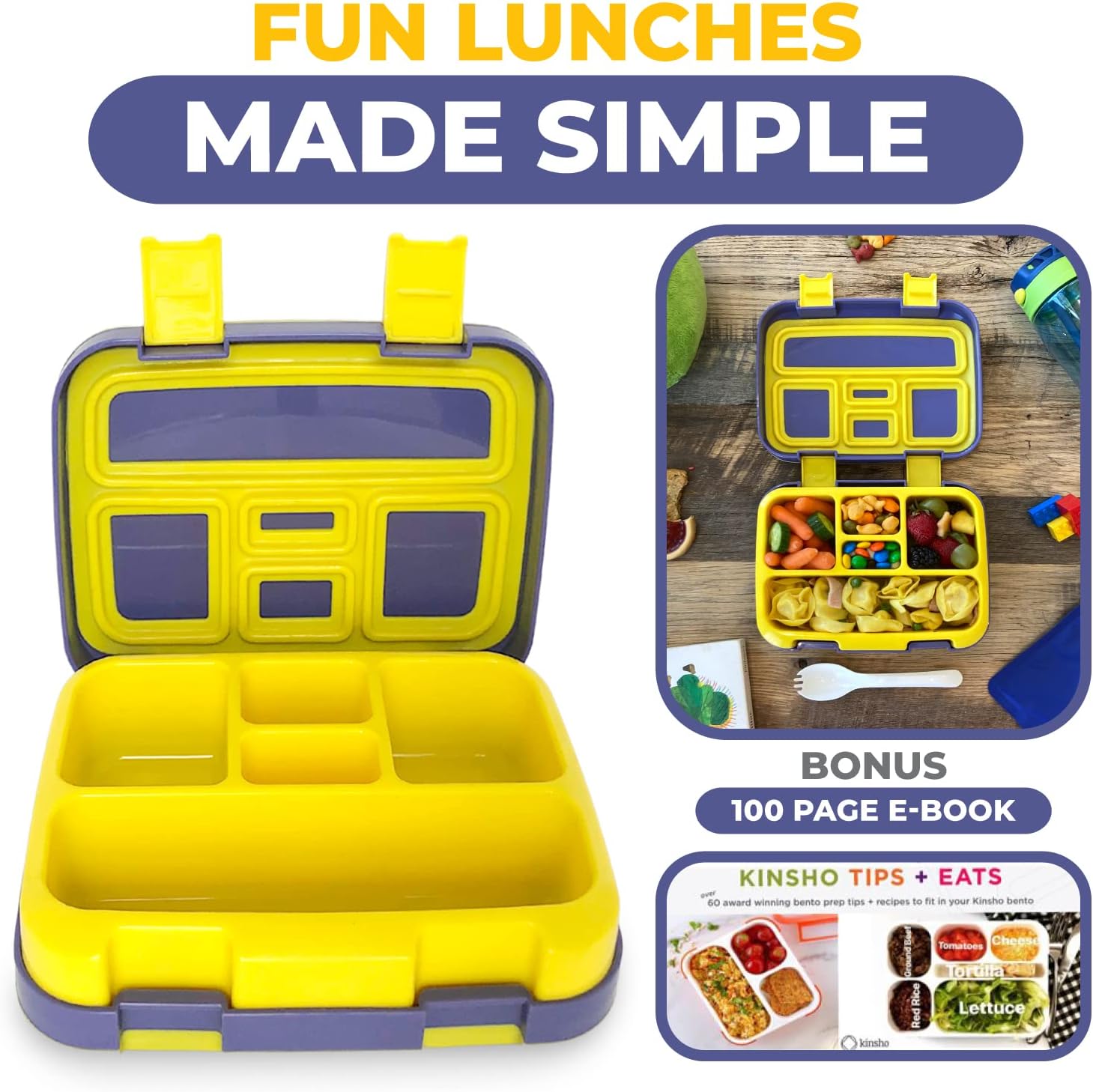 - BONUS Bento Tips eBook for Moms – Each of our kid’s bento box containers also comes with a complimentary 100-page Tips + Eats eBook written by the mom and award-winning mindful eating author who founded kinsho.