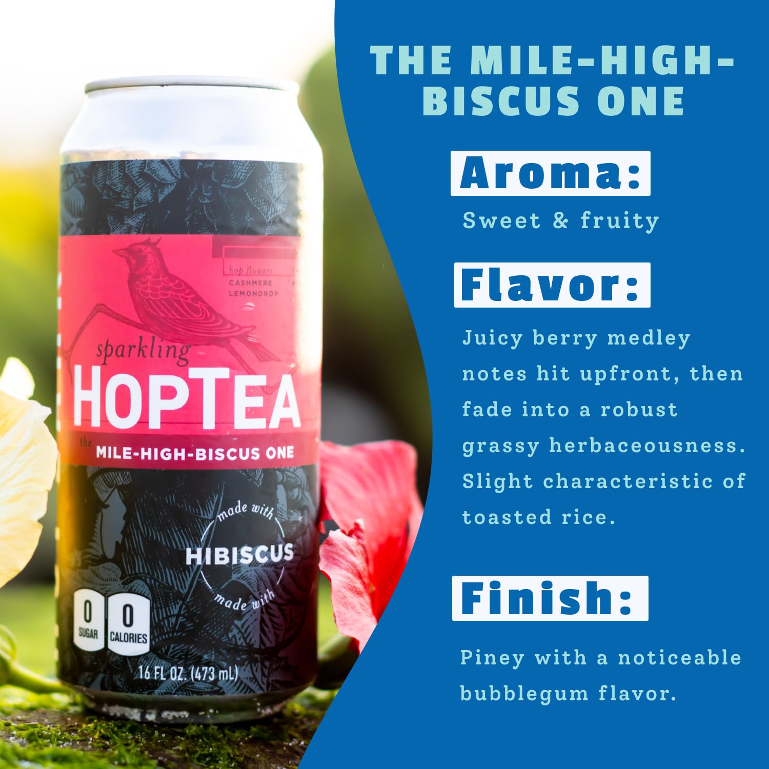 - BOLDLY BOTANICAL AND BEAUTIFULLY BALANCED – The Mile High Biscus One is a vibrant sparkling tea brewed with hibiscus and dry-hopped with Lemondrop and Cashmere hops. It delivers a juicy tartness, layered with gentle berry and citrus notes that surprise and delight.